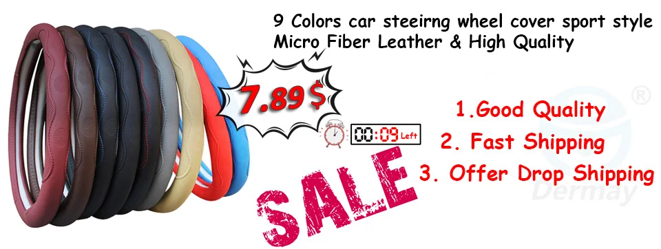 1. Состояние: 100% новый бренд Dermay 2. Материал: кожа из микроволокна и белое внутреннее кольцо 3. Цвет: черный, белый, желтый, фиолетовый, коричневый, синий, красный 4. Функция: воздухопроницаемость, сохраняет сухость, не скользит, роскошный эргономичный дизайн, может использоваться в течение четырех сезонов. 5. Выбор диаметра: Размер M подходит для внешнего диаметра руля 37-38 см (14 "-15"), один размер подходит для 96% автомобилей