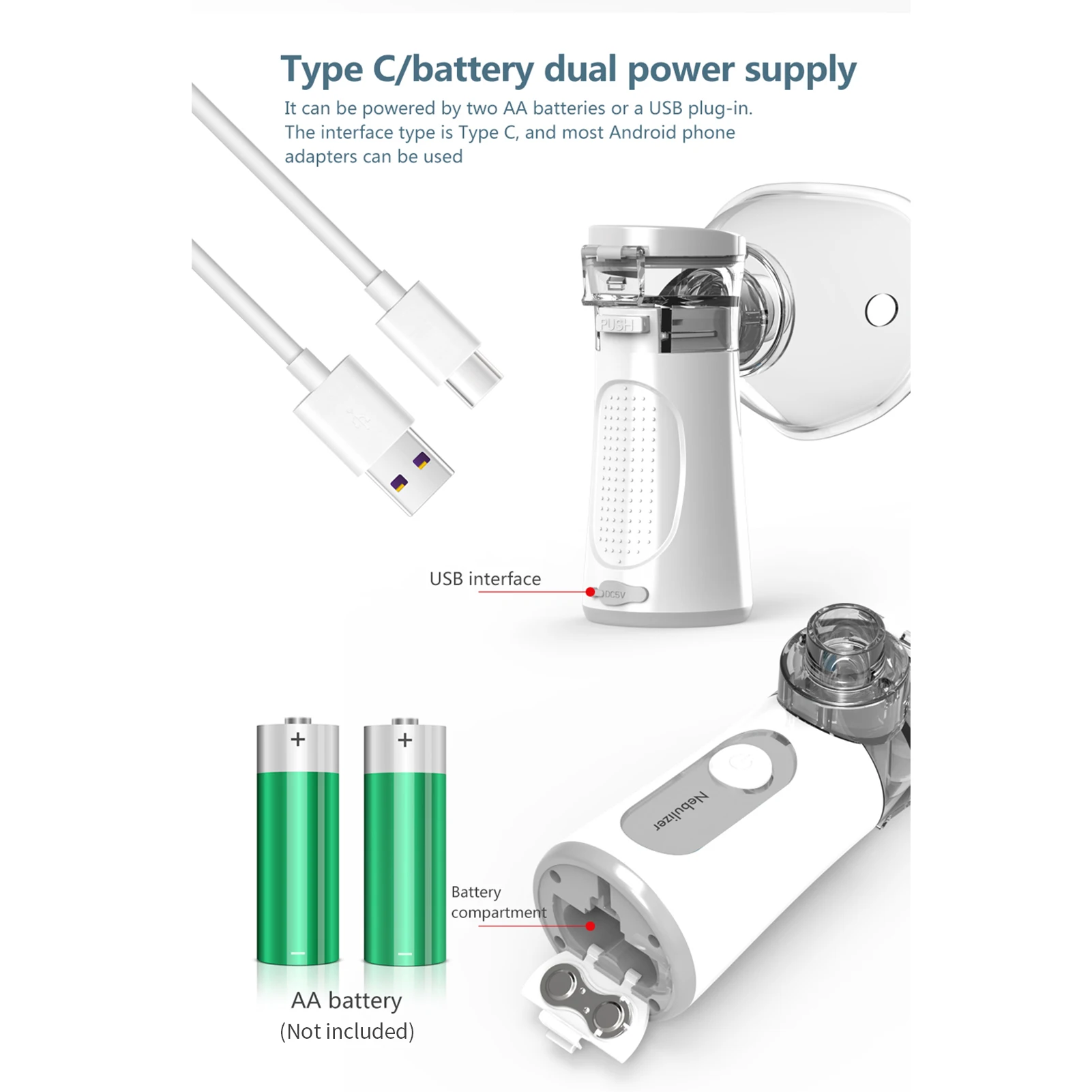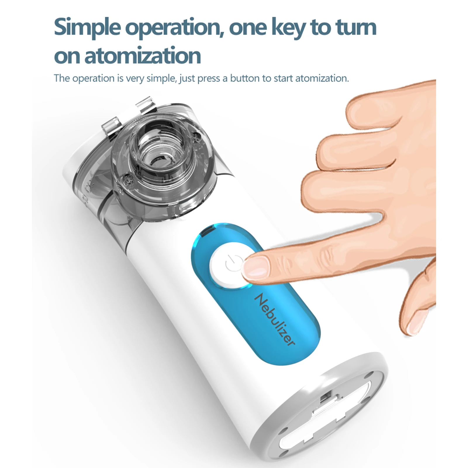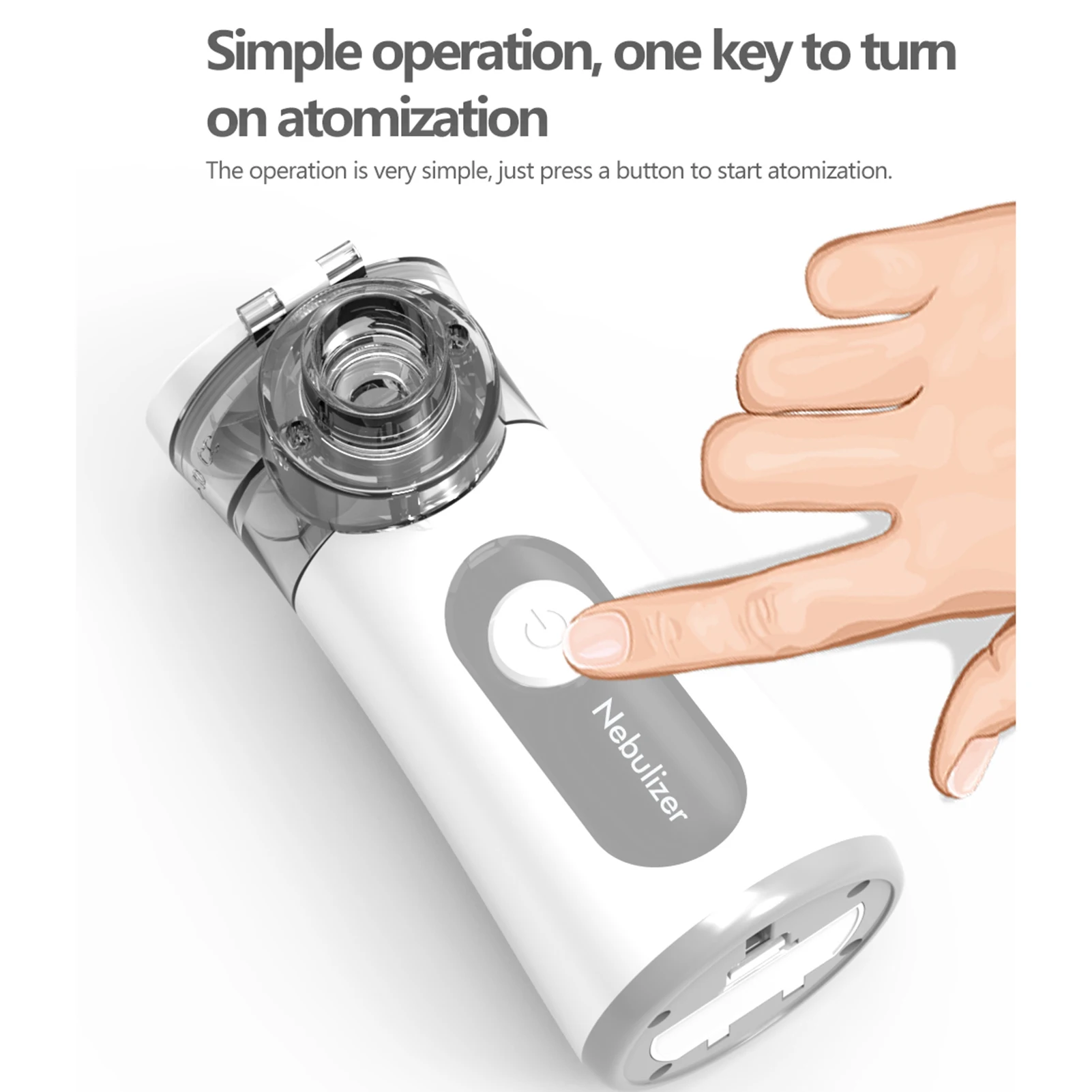 Портативный микропористый распылитель для детей и взрослых, прост в эксплуатации и использовании. Он может создать тонкий туман для лучшего поглощения. Ультра-низкий уровень шума и портативный размер, легко носить с собой, подходит для дома, офиса или путешествий.