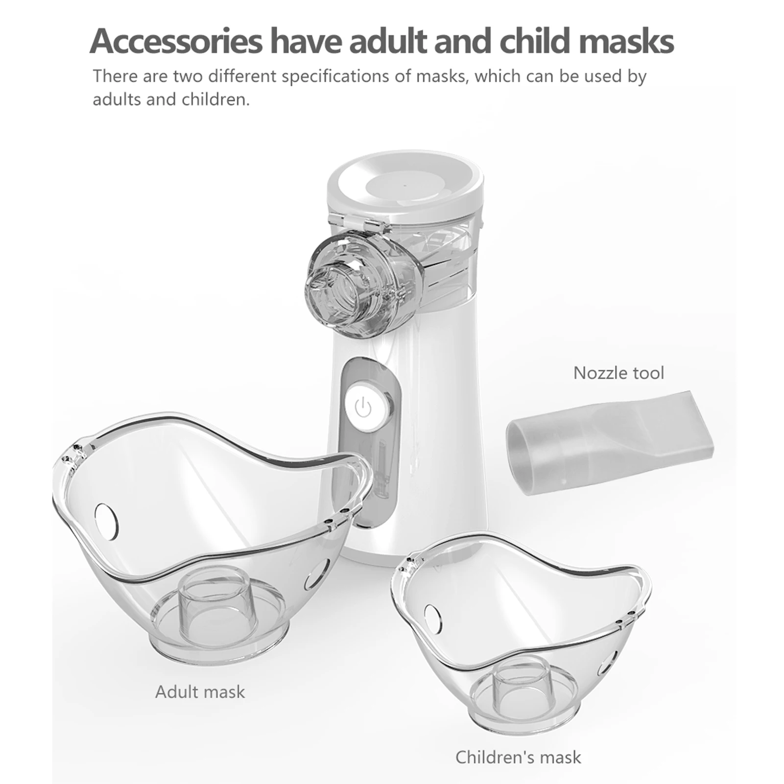 Оснащен маской для взрослых, детской маской и всасывающим соплом для удовлетворения различных потребностей.