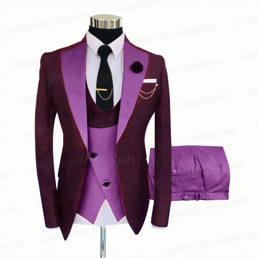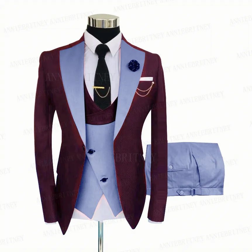 Отзывы о Деловой костюм мужской бордовый приталенный смокинг для жениха двубортный
