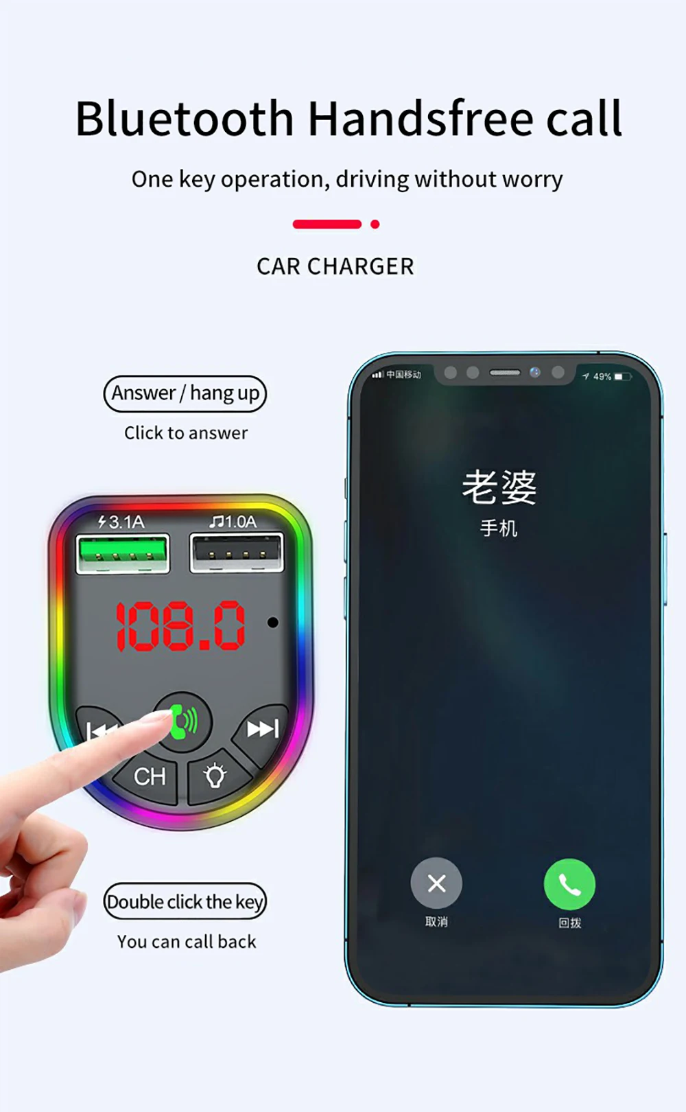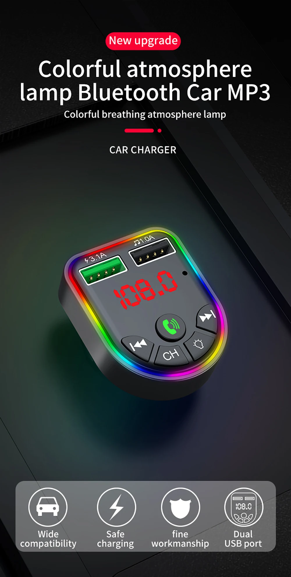 Автомобильный MP3-плеер со светодиодной подсветкой, fm-передатчик, беспроводной стерео автомобильный комплект с поддержкой карт TF/U Disk Play