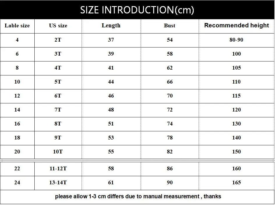 Китайский размер:130 = 6T = 6 летПодходящая высота:130 см