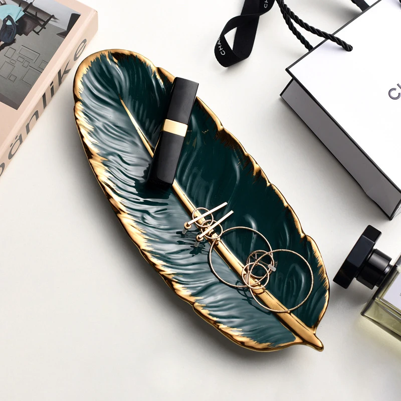 Отзывы о Роскошный керамический поднос с перьями настольный для хранения креативный