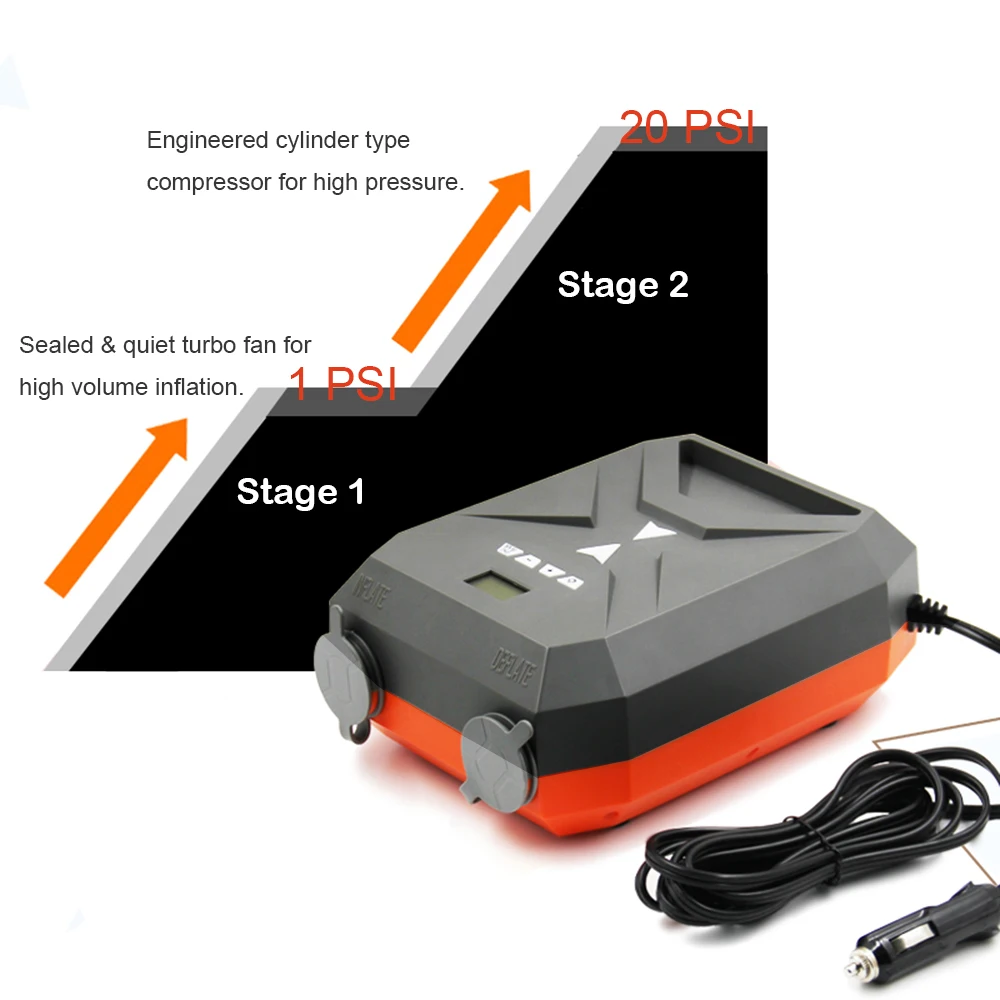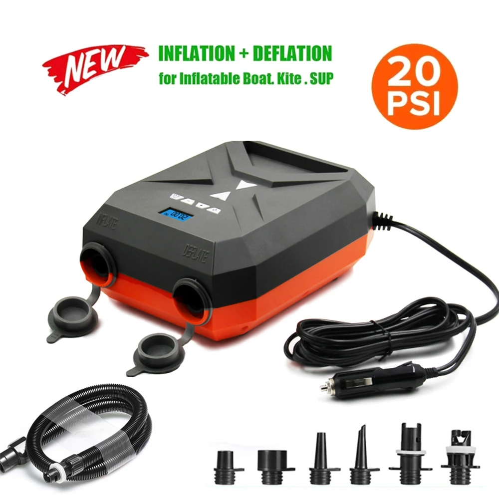 Двойные медные двигатели с высокой производительностью, быстро надувают и сдувают ваши SUP и надувные лодки, и плоты.