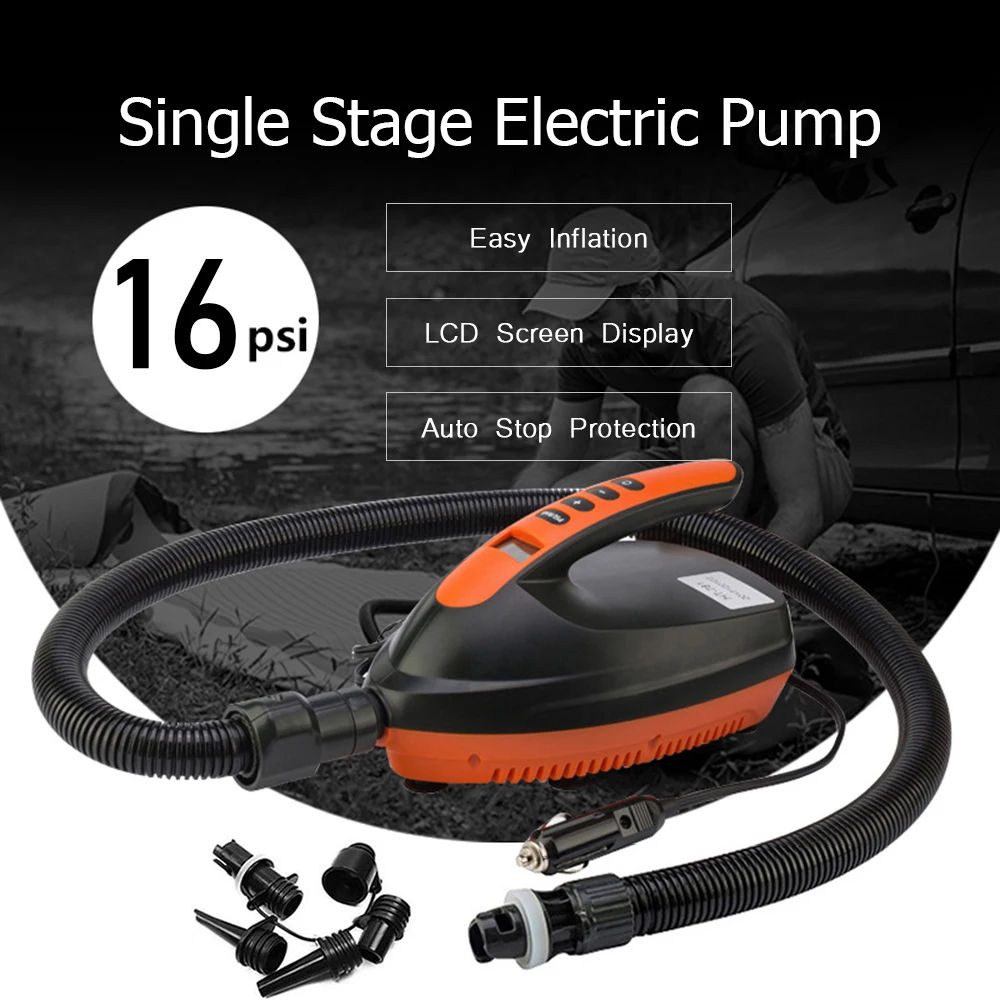 ЭТОТ автоматический двухступенчатый Интеллектуальный 12 В DC Электрический насос поставляется с цифровым управлением и ЖК-экраном для отображения установленного давления и давления воздуха в реальном времени. Насос может автоматически останавливаться при предварительно установленном давлении воздуха. Легко надувать и сдувать для ваших требований. Поставляется с 6 насадками для большинства надувных матрасов, надувных лодок, палаток, досок для весла и т. д.