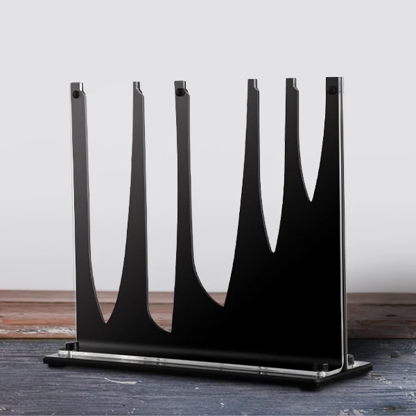 Наш стенд тяжелее с 3 слоями из акрила и производится для того, чтобы быть видно! Идеальная кривая резки удерживает все пять ножей в твердой и 3 дополнительных винта из нержавеющей стали в верхней части для двойной стабильности.
