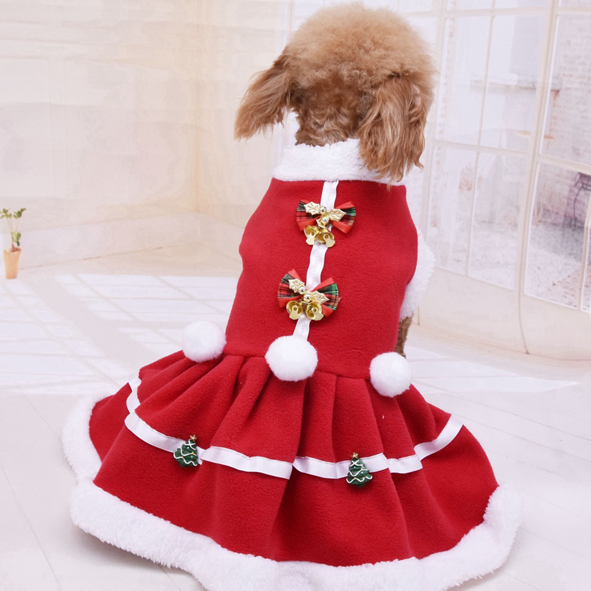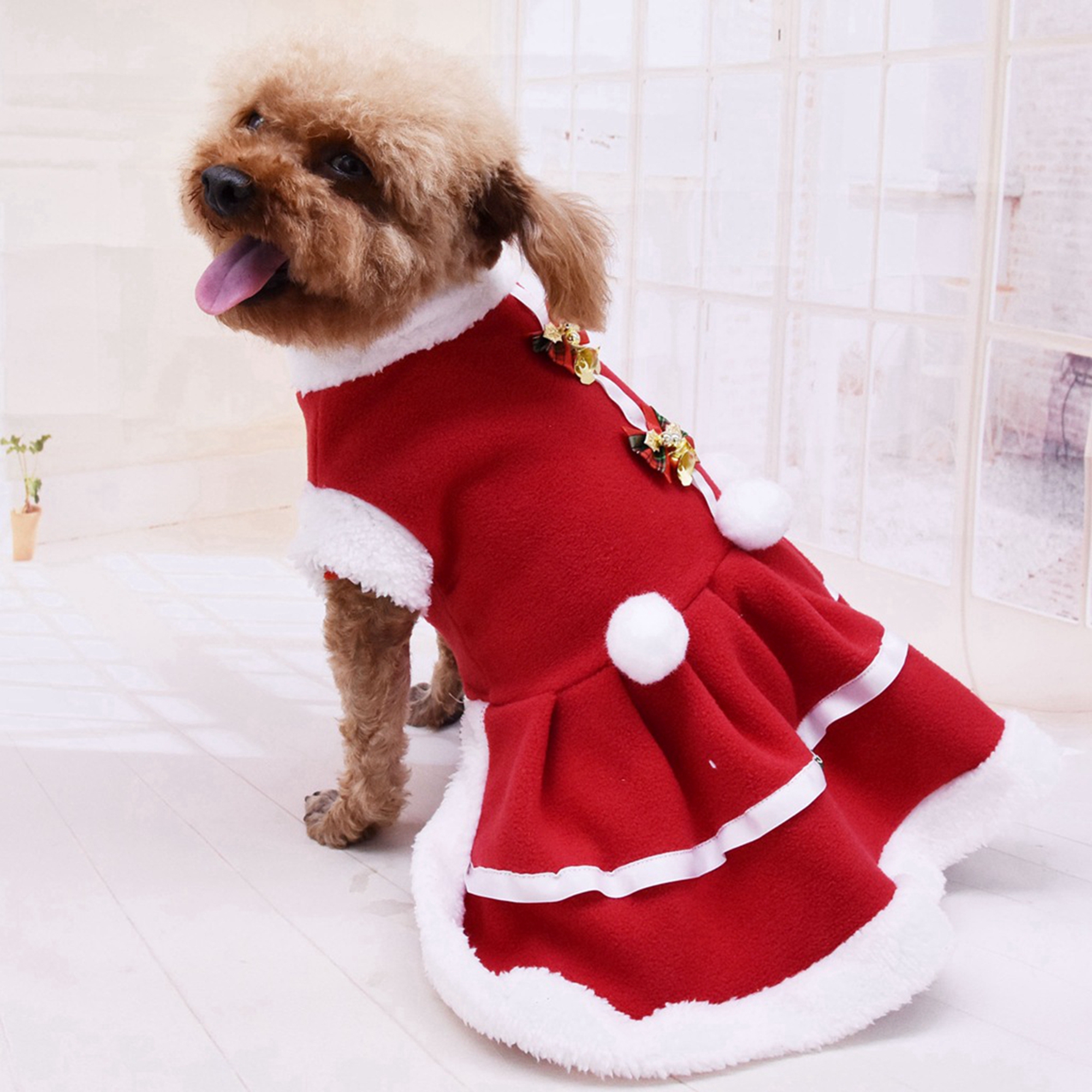 Pets Dress, Fur Collar Short Sleeve One-Piece with Bowknot and Bell