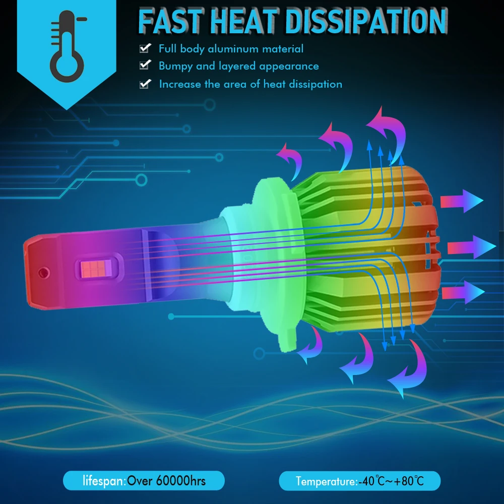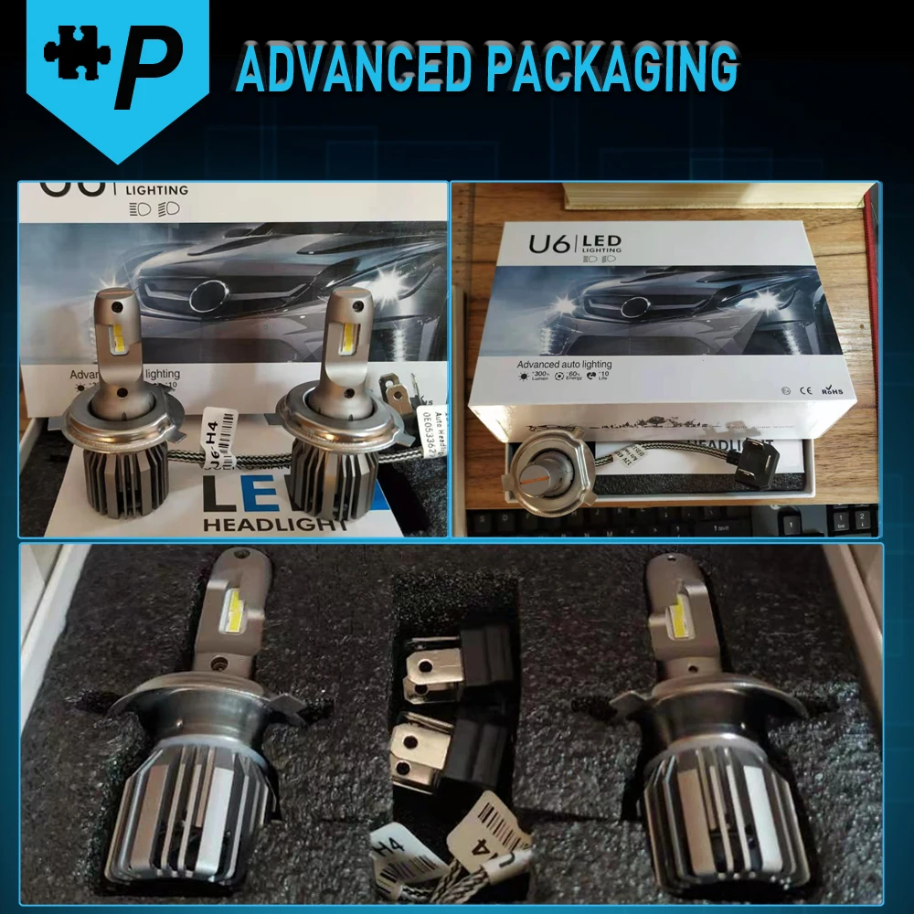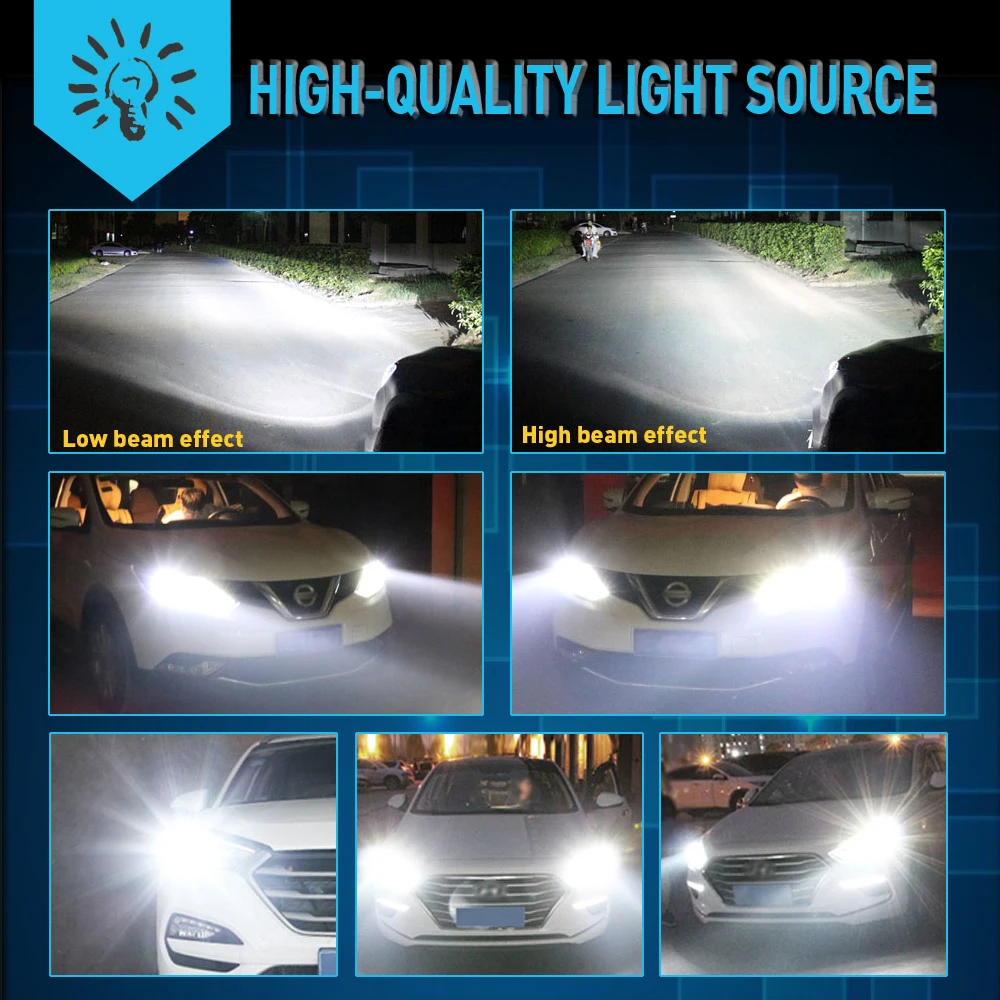 Двойной луч: H4/9003/HB2, 24 шт. чипов CSP/набор. Один луч: H1, H7, H11/H8/H9, 9005/HB3, 9006/HB4, 12 шт. чипов CSP/набор. Мощность: 48 Вт Количество СВЕТОДИОДНЫЙ: 12PCS-CSP Световой поток: 16лм Рабочее напряжение: DC12V 24V Рабочий ток: 2A Цветовая температура: 6000K холодный белый Степень защиты: IP65 Номинальное уплотнение воды и пыли Рабочая температура: -40-80 градусов Цельсия Срок службы: более 30 000 часов Использование: головной светильник, противотуманный светильник Встроенный Турбовентилятор для охлаждения. Меньший дизайн теплоотвода, применяется для 99.99% автомобиля. Подключите и играйте, замените оригинальные галогенные и тусклые лампы в течение 10 минут.