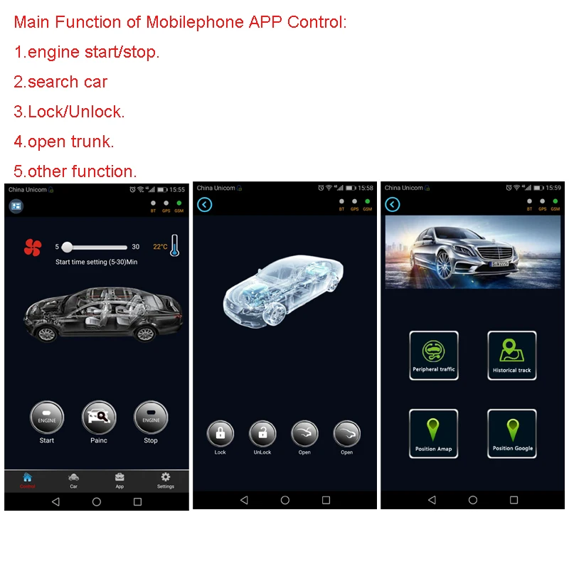 1. Дистанционный запуск двигателя транспортного средства, чтобы охладить или согреть ваш автомобиль до вождения. Он будет чувствовать себя более комфортно в холодную зиму и жаркое лето.