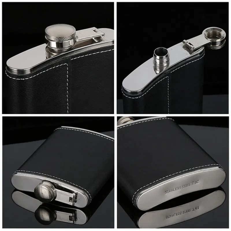 Портативная фляга из нержавеющей стали, Мини фляжка, фляга, винный горшок для виски, Подарочная бутылка 5/6/7/8/9 унций с кожаным держателем, Подарочная фляга для алкоголя GHS99