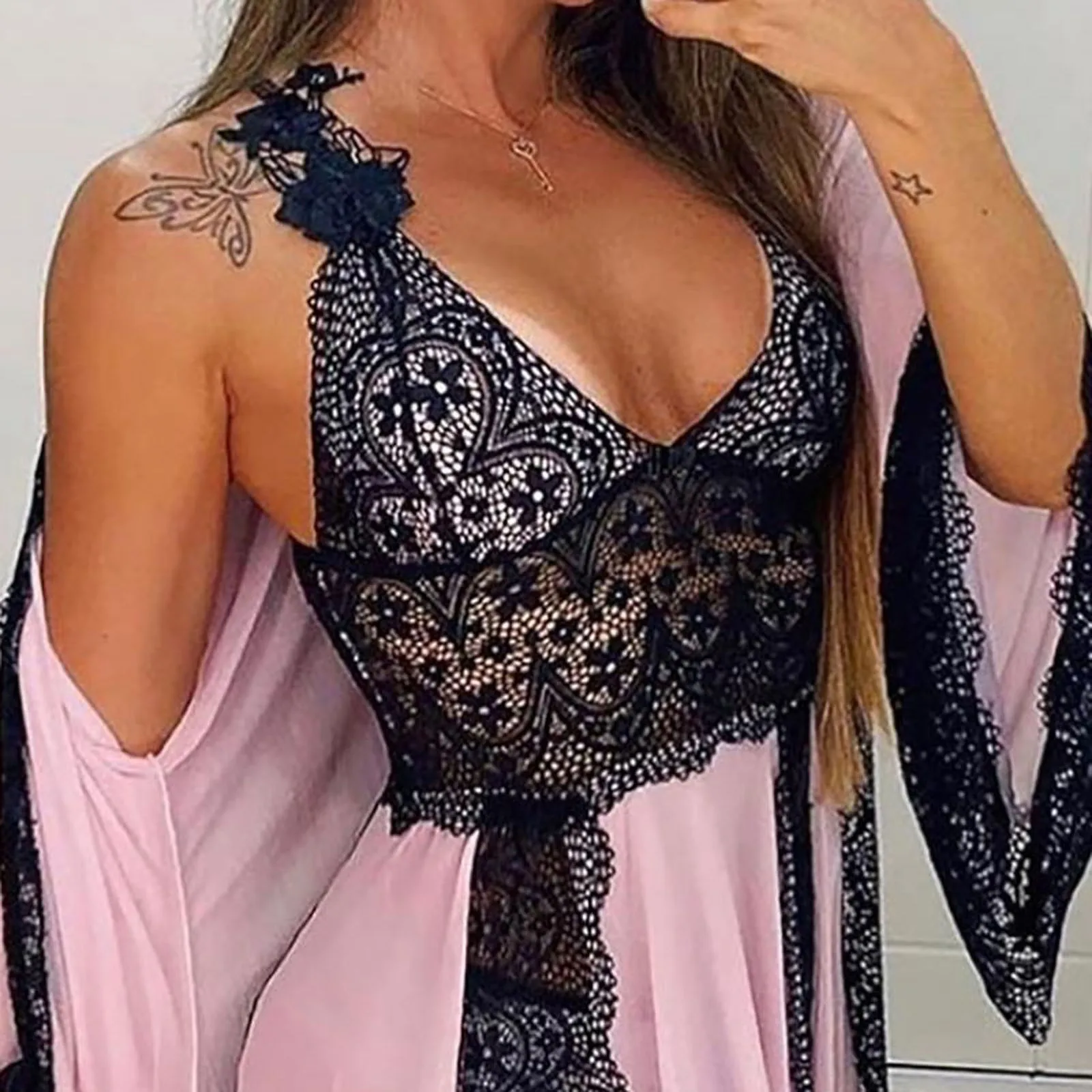 Отзывы о Халат-кимоно Женский сетчатый пикантный розовый свадебный комплект с халатом