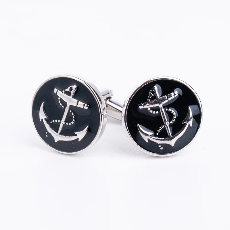 Уникальные запонки в форме якоря для мужчин, французские рубашки, черные эмалированные запонки на пуговицах золотого, серебристого цвета, металлические запонки, набор для продажи