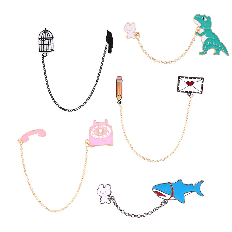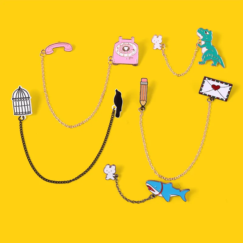 Эмалированные булавки брошь милый телефон птица клетка динозавр булавка сплав броши для женской одежды металлические значки Подарки для женщин ювелирные изделия