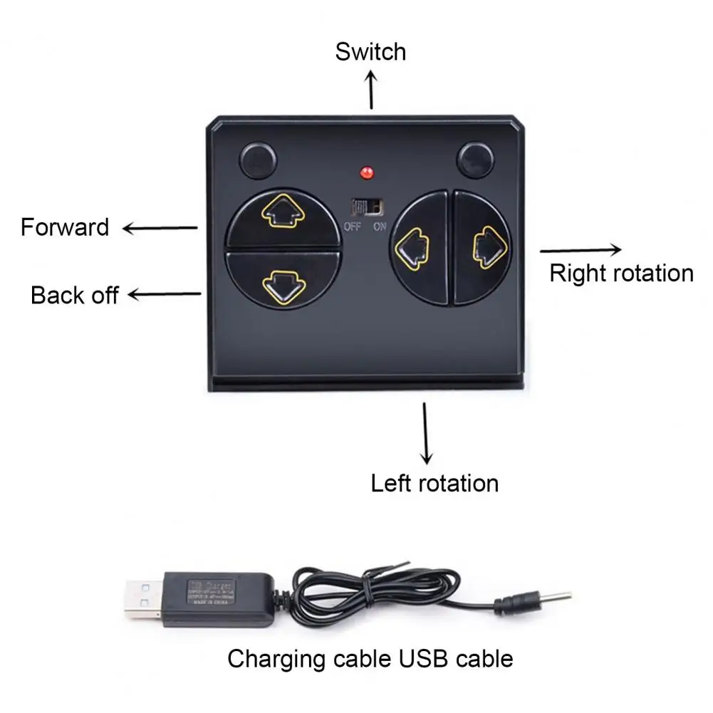 Особенности с вращением вперед, назад, влево и вправо (вращение на 360 градусов на месте), тонкой регулировкой и переключателем воды, это очень интересно для детей.