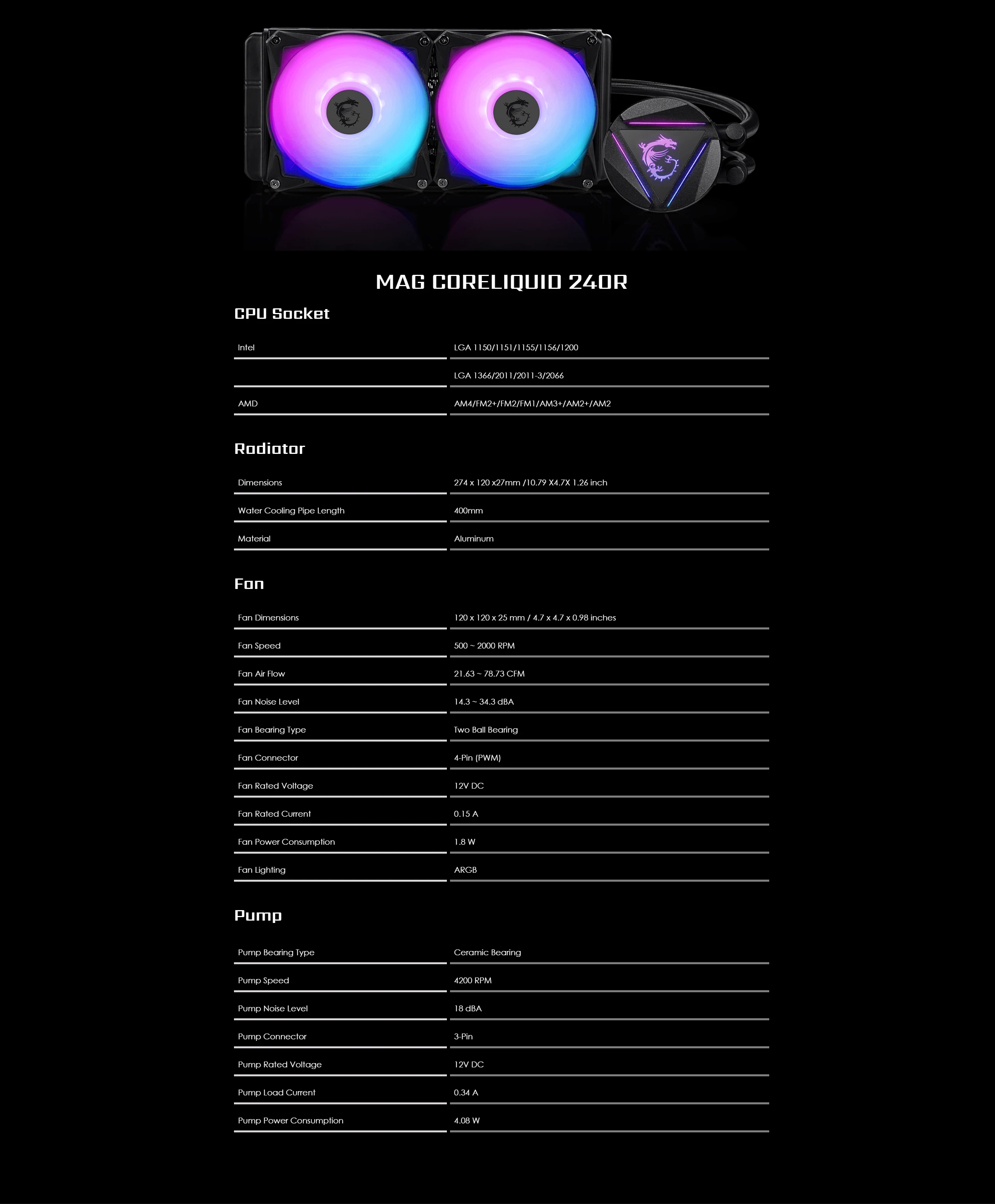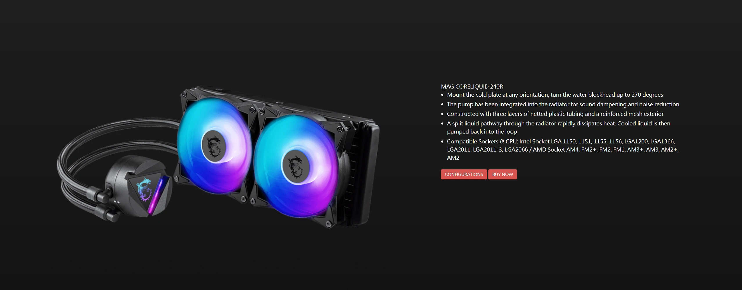 Отзывы о Кулер MSI MAG CORELIQUID 240R RGB с водяным охлаждением поддержкой материнской платы