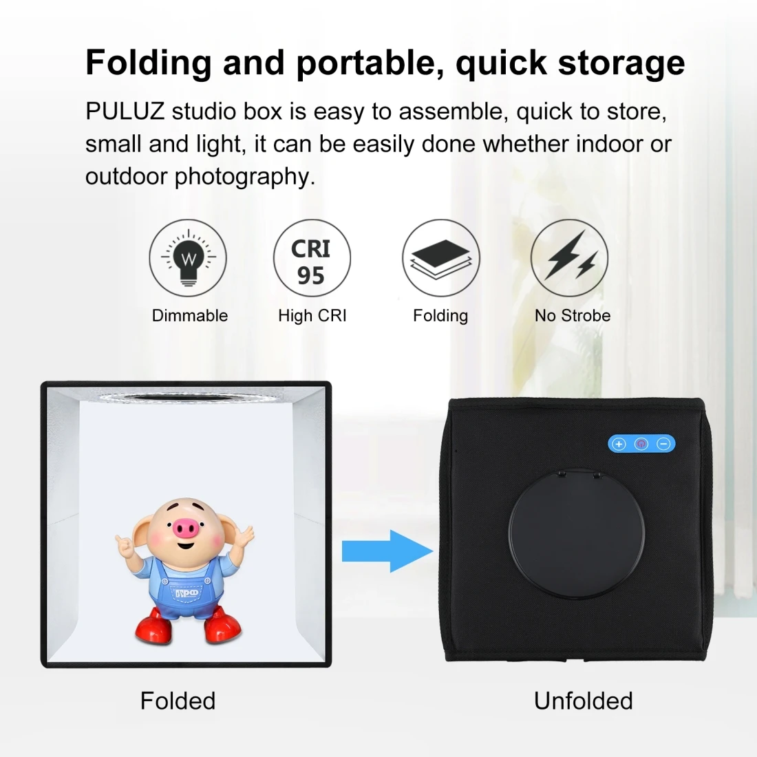 3. Легко собрать (Используйте его после трех секунд сборки), вы можете развернуть этот светодиодный лайтбокс-студия и разместить его на любой поверхности, чтобы получить очень хороший фон для небольших предметов деловой фотографии, фотографирование товаров.