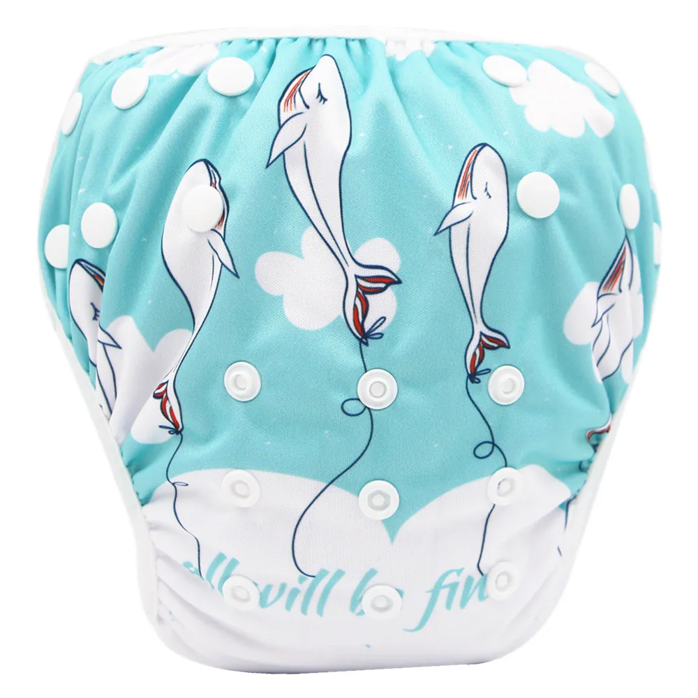 Новые детские подгузники для плавания с принтом, водонепроницаемые регулируемые тканевые подгузники для бассейна, штаны для плавания, многоразовые моющиеся подгузники для малышей