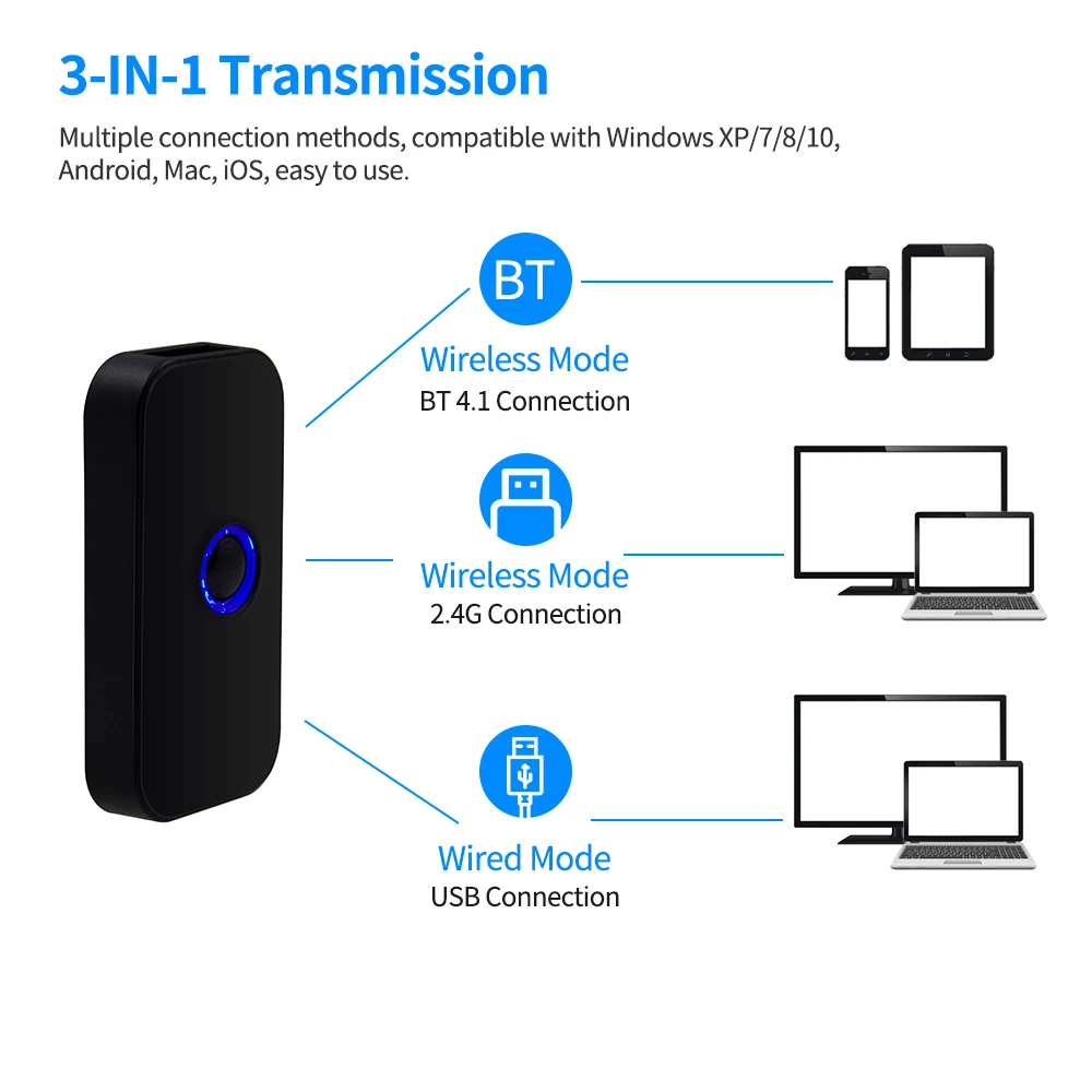 Отзывы о Ручной 3-в-1 сканер штрих-кода 1D/2D/QR штрих-кодов Поддержка Bluetooth/2 4G Беспроводной/USB