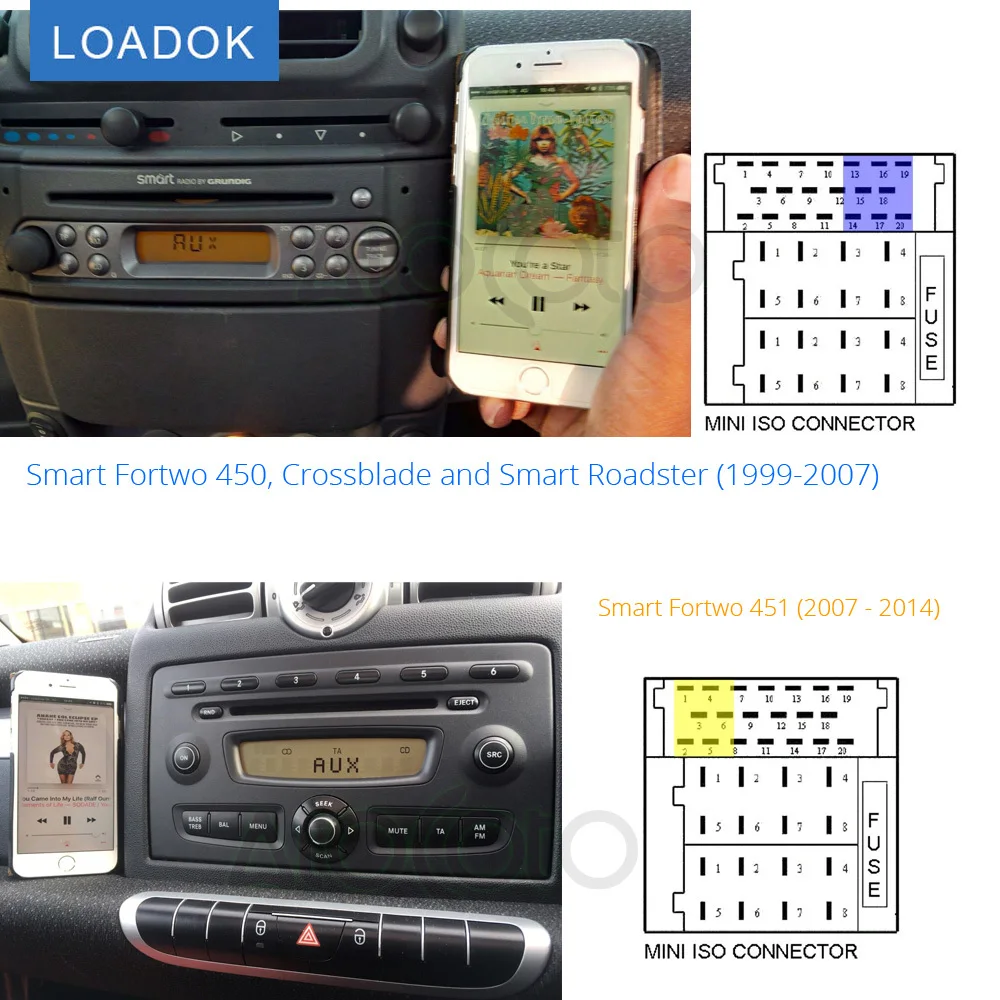 -Название Bluetooth: JieRui-BT 5908 -Функция через bluetooth-устройства -Нет функциональных ограничений автомобильного радио -Позволяет подключать внешний источник звука -И Соедините свой телефон с нашим модулем bluetooth и выберите Aux с вашего радио. -Вы можете наслаждаться музыкой с телефона через Автомобильные колонки. Совместимость с: -Синий жгут проводов: подходит для Smart Fortwo 450, Crossblade & Smart Roadster (1999-2007) -Жгут проводов желтого цвета: подходит для Smart Fortwo 451 (2007 - 2014) Для всех интеллектуальных заводов установлены Grundig радио, радио, радио/кассеты или радио/CD. Это заменяемый товар на вторичном рынке, но не настоящий Примечание: -Все размеры измеряются вручную, могут быть небольшие отклонения. -Цвет может незначительно отличаться из-за настроек цвета каждого индивидуального монитора. -При покупке, пожалуйста, подтвердите, что ваш CD поддерживает AUX -Обычно можно использовать только компакт-диски с поддержкой AUX.
