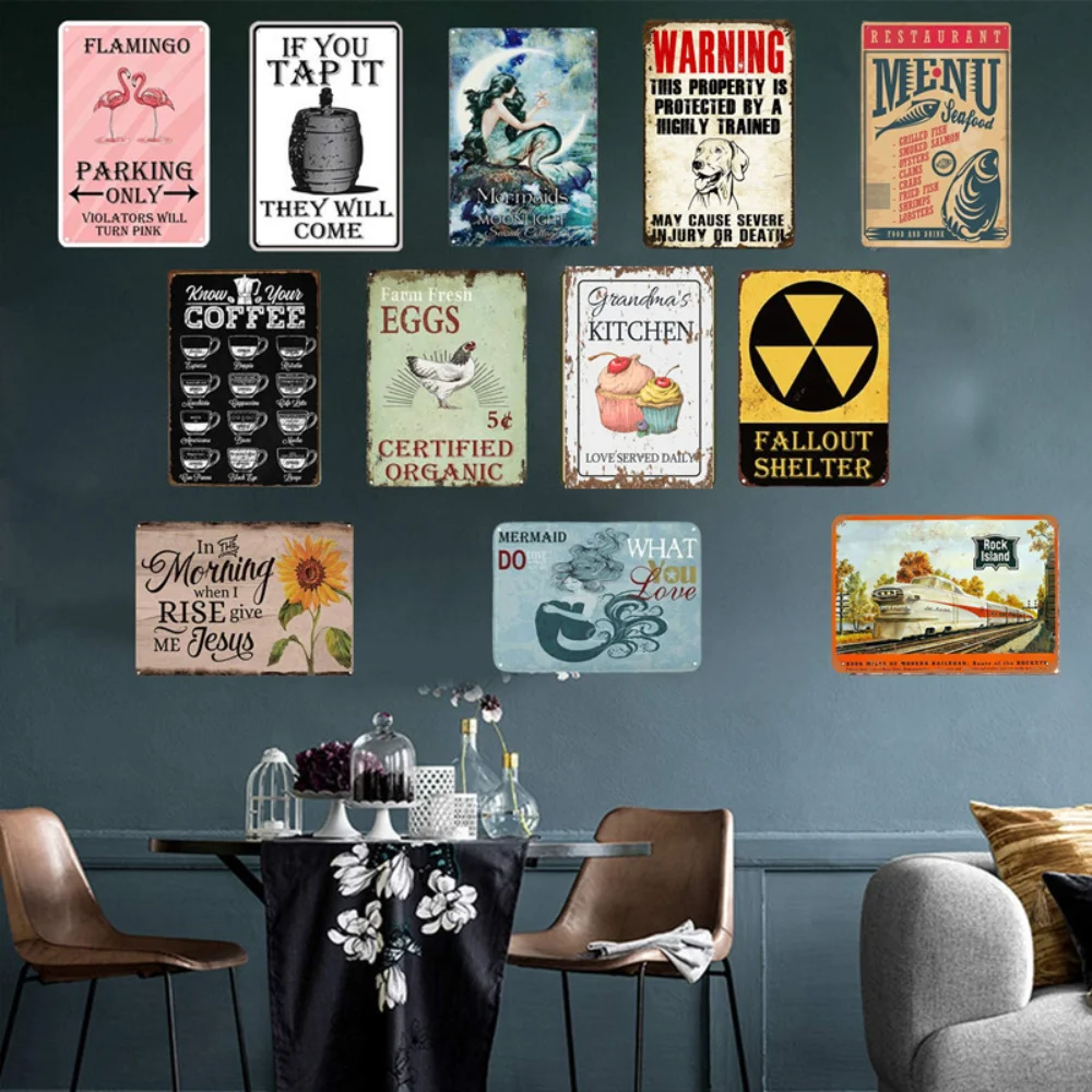 -Эта винтажная декоративная роспись с жестяной вывеской изготовлена с загнутыми краями для безопасности и устойчивости.