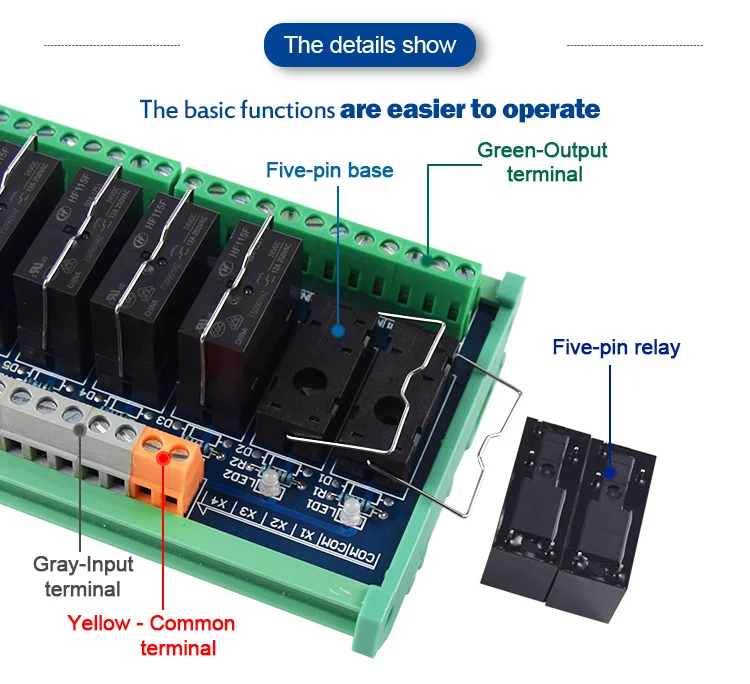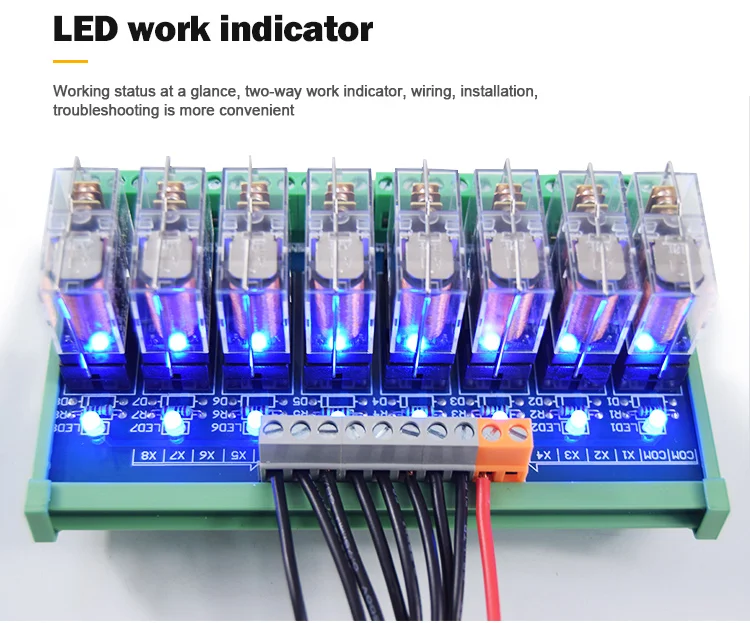 Индикатор действия: при входе «COM» до 0 в «X» до 24 В светодиодный индикатор красного цвета («COM» до 24 В светодиодный светильник синего цвета)