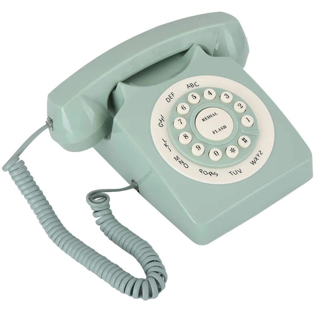 Винтажный стационарный телефон, Ретро стиль, проводной настольный телефон, старинный европейский телефон, зеленый, высокая четкость вызова, большая прозрачная кнопка