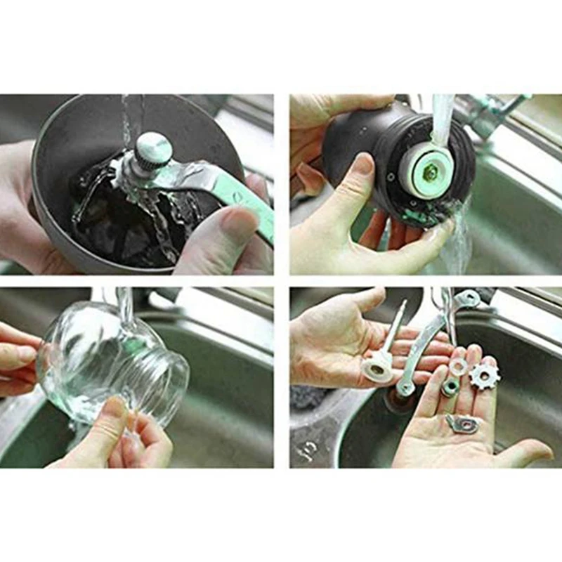 The coffee grinder can be split into parts. All parts are washed and are not restricted to use. The design of the two glass jars is more convenient, keeping powder or beans during a trip or a small gathering with friends.Slow down your life and give up instant coffee. Make a cup of coffee and make you feel refreshed all day.