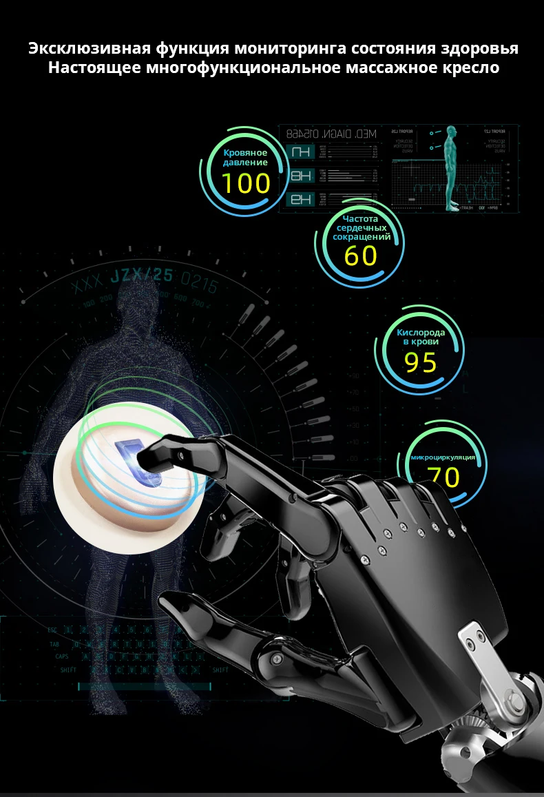Настоящий многофункциональный массажный стул. Кровяное давление, пульс, кислород в крови, микроциркуляция