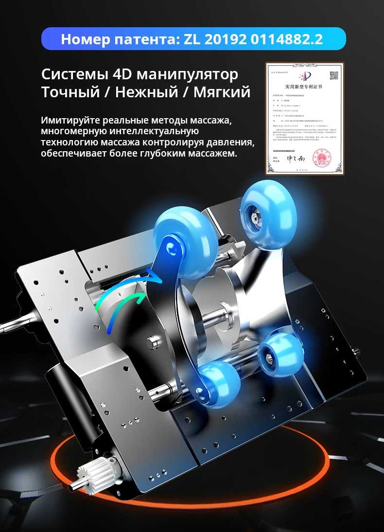 * Номер патента: ZL 20192 0114882,2 * Точный/деликатный/мягкий Имитирует Реальные методы массажа, многомерная интеллектуальная технология контроля давления, обеспечивает более глубокий массаж
