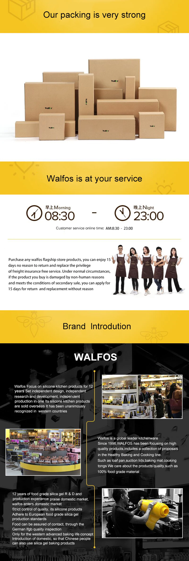 2.100% пищевой FDA Aprroved (стандарт США) силикон, BPA бесплатно.Силиконовая сковорода WALFOS безопасна для вашей семьи и подходит для окружающей среды. Широкий диапазон термостойкости: от-104 ℉ до 446 ℃ (от-40 ℃ до 230 ℃); Безвкусный, безопасный для микроволновой печи, духовки, посудомоечной машины, холодильника, морозильной камеры. Просто не стесняйтесь наслаждаться гораздо более здоровым лечением с семьей и друзьями.
