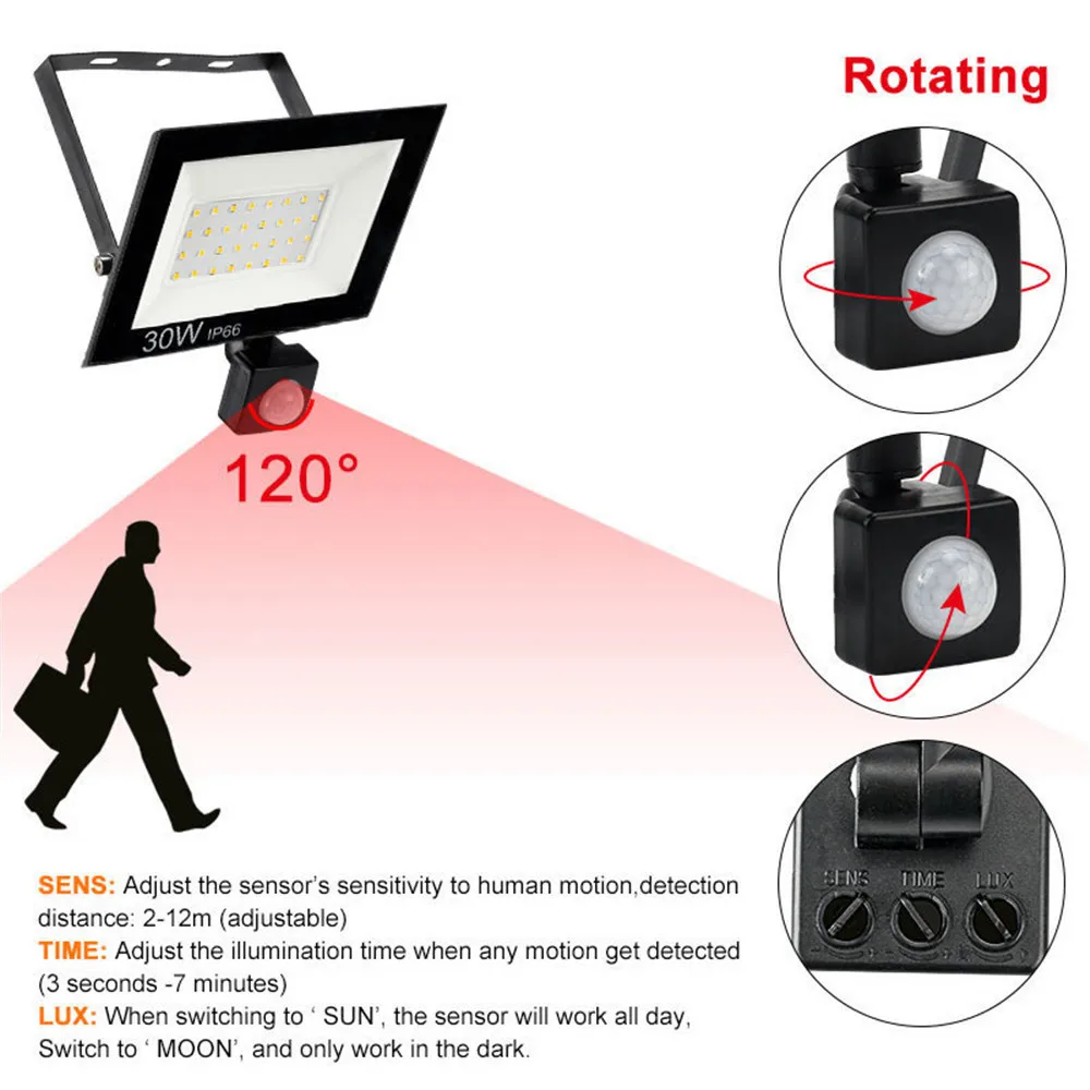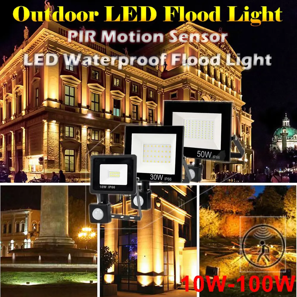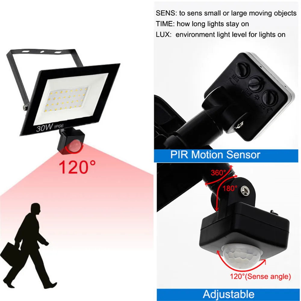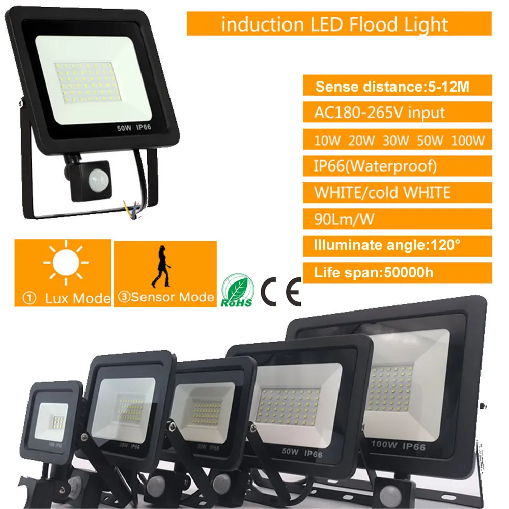 Наружный AC175-265V светодиодный светильник PIR датчик движения отражатель светодиодный светильник водонепроницаемый IP66 Точечный светильник наружное настенное освещение светильник ing белый/теплый белый светильник ing цвет, по умолчанию холодный белый светильник ing цвет