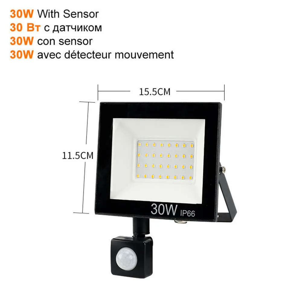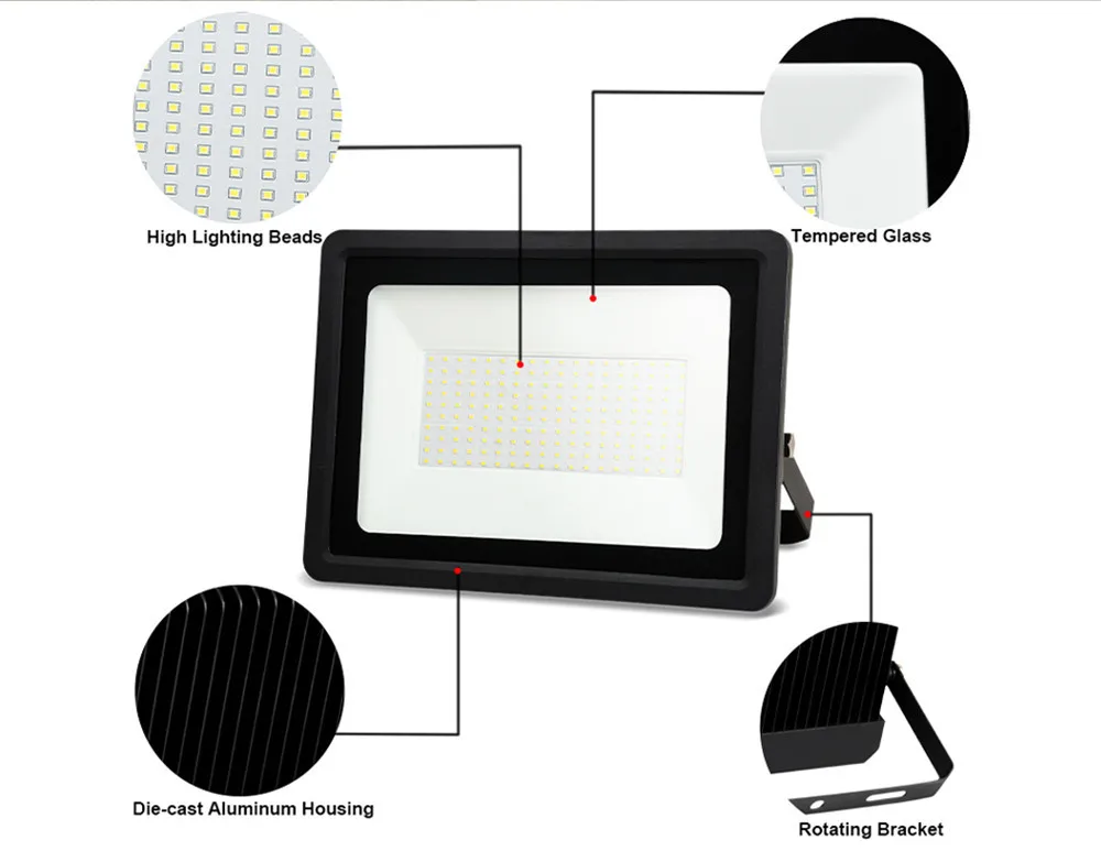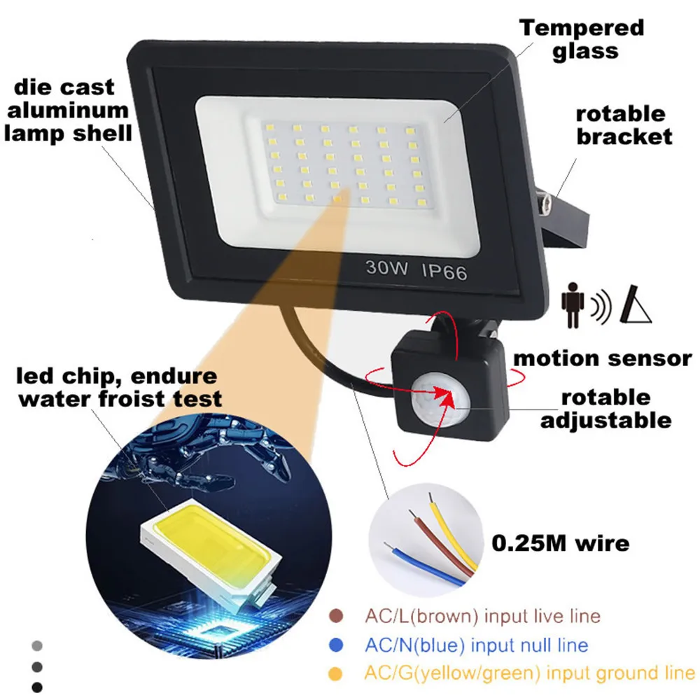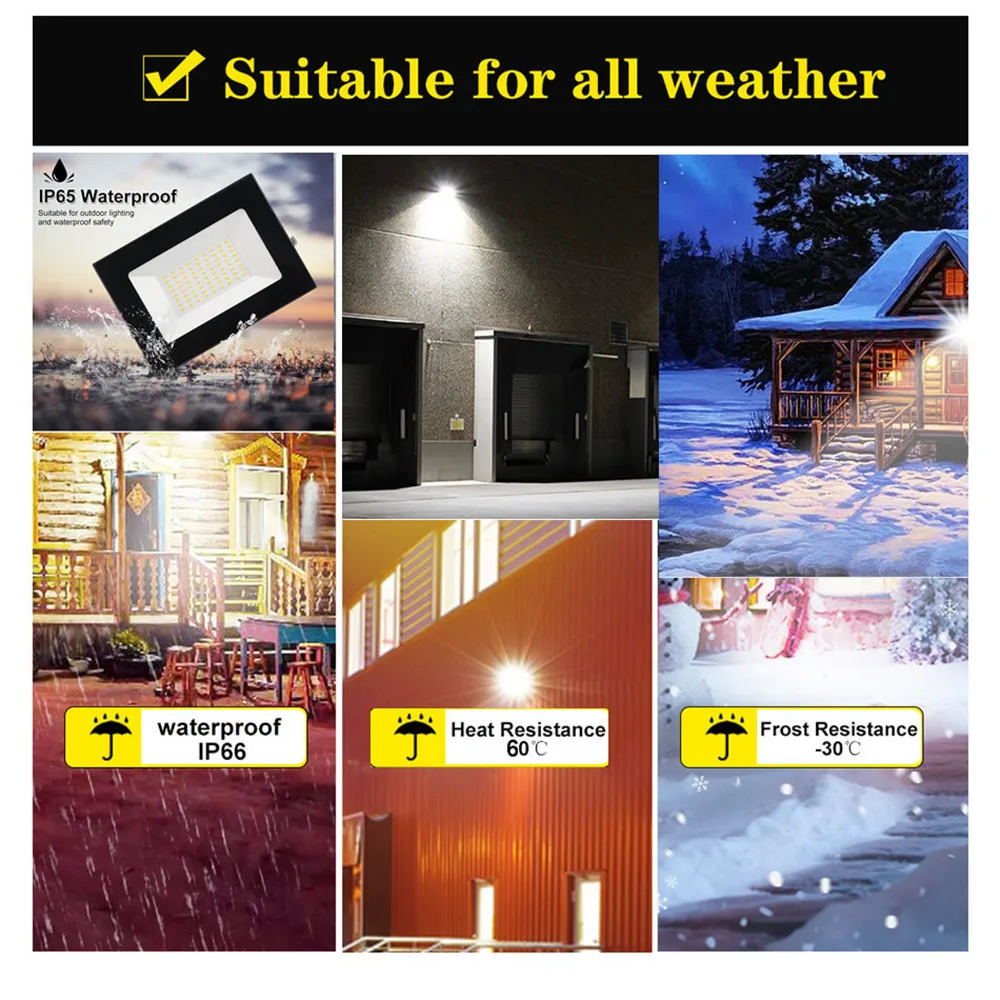 Водонепроницаемый прожектор IP66 с герметичным литым алюминием + закаленным стеклом, отлично работает в экстремальных погодных условиях. Водостойкий, пыленепроницаемый, термостойкий и морозостойкий, взрывозащищенный, термостойкий .. Значительно улучшает стабильность наружного освещения и долгосрочного использования для двора, крыльца, ступеней, стен, дорожек, подъездных дорожек.