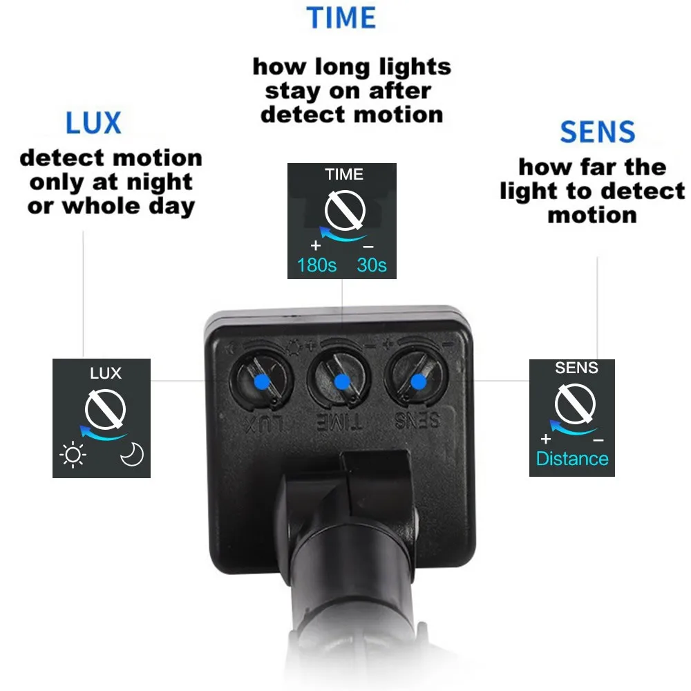 SENS: Отрегулируйте чувствительность датчика к двигательной функции человека, Расстояние обнаружения: 2-12 м (регулируется)