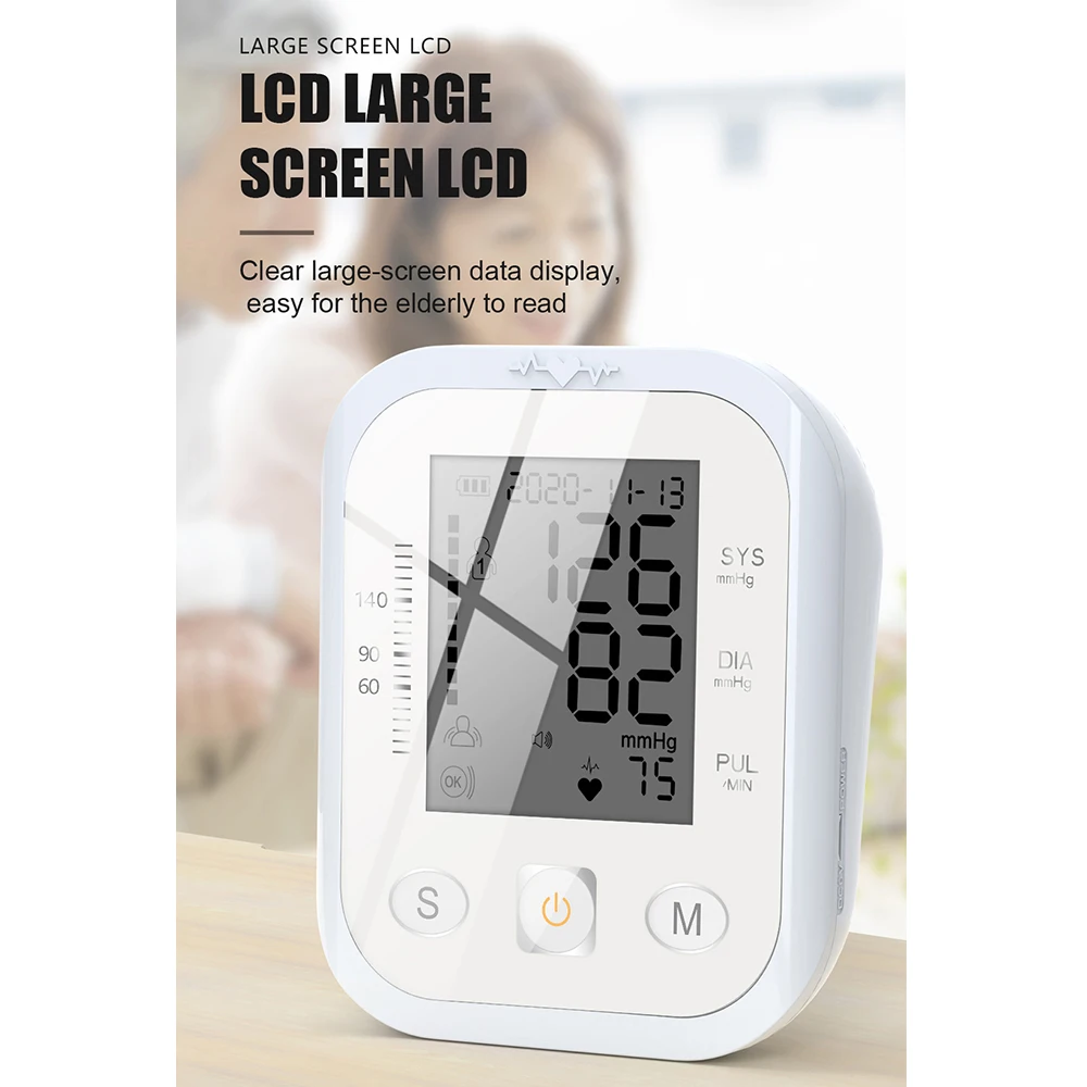 Этот монитор артериального давления в верхней части руки С трехцветным интерфейсом освещения, быстро проверить состояние здоровья. ЖК-дисплей подходит для пожилых людей. Компактный размер, позволяет измерять в любом месте и в любое время.