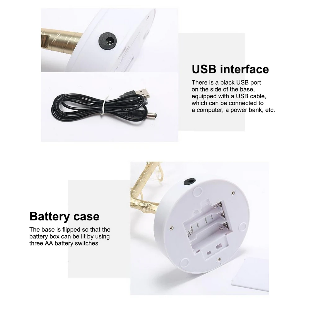 - -Батарейный блок, основание перевернуто, чтобы быть батарейным блоком, используйте три батарейки АА, чтобы светильник