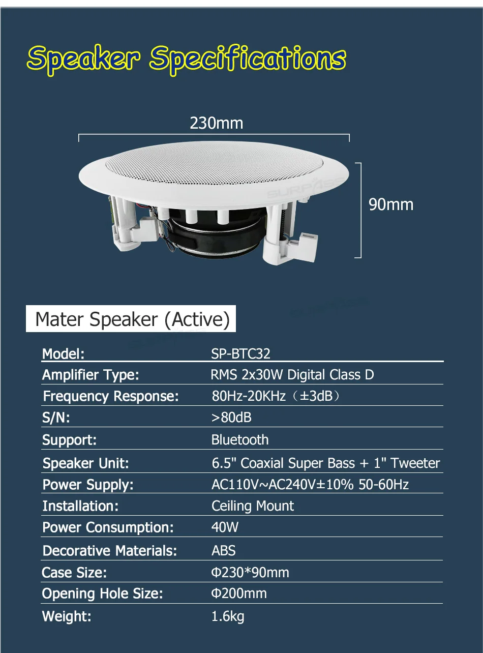 Мастер активный динамик мощный Hi-Fi стерео питание Coxial Bluetooth потолочный динамик Встроенный усилитель класса D: