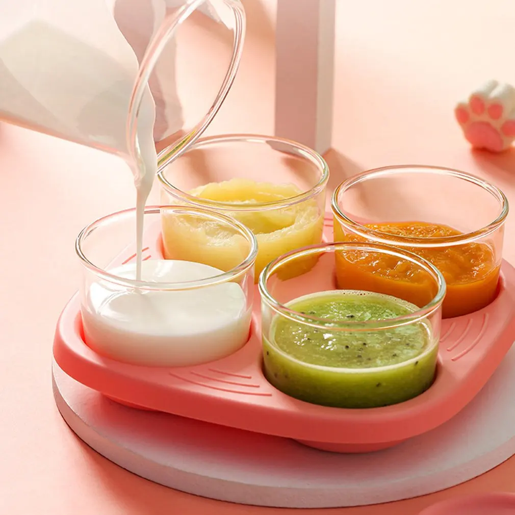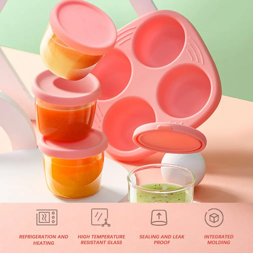 Отзывы о 4pcs Baby Infant Silicone Borosilicate Glass Food Supplement Fresh-keeping Box Breast Milk Freezer Microwave Sealed Storage |