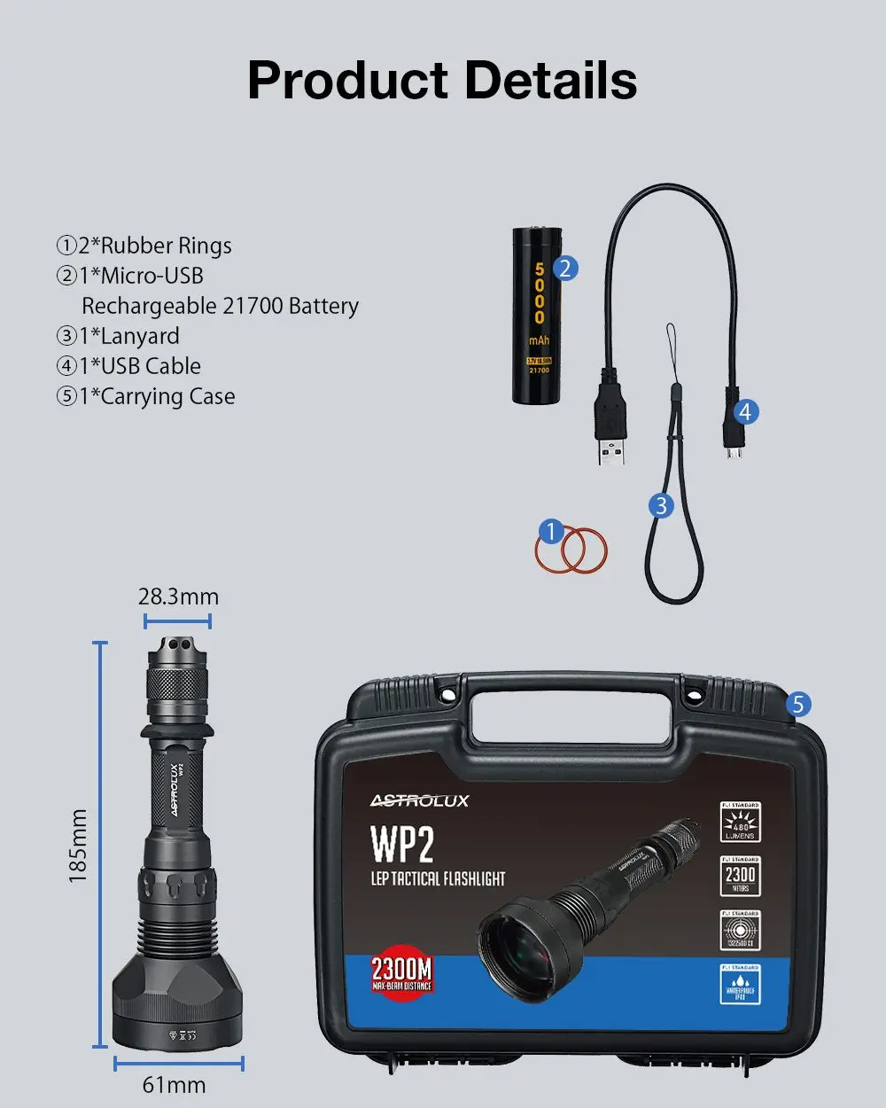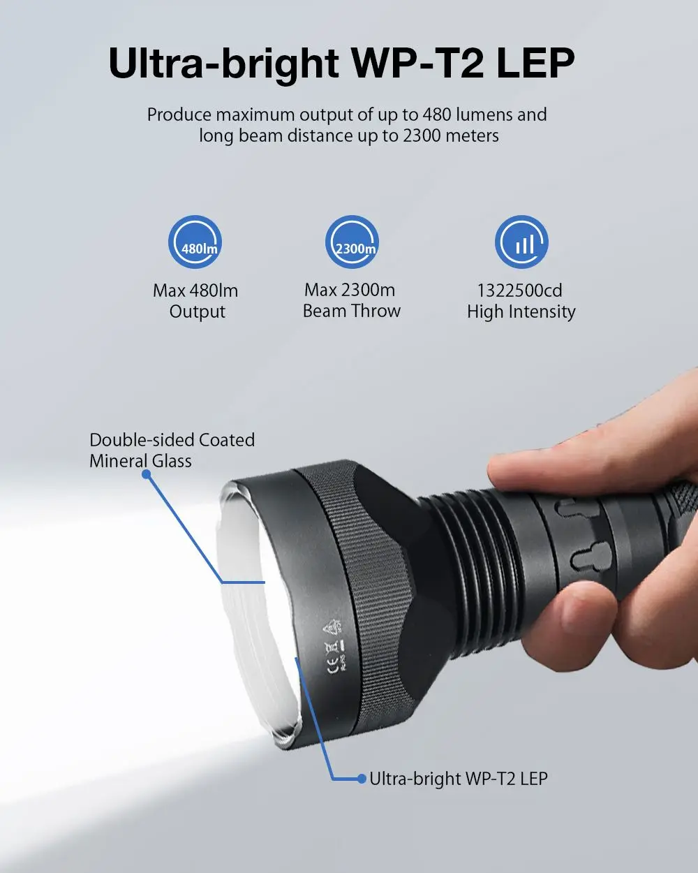 1. Максимальная выходная мощность 480 лм, дальность луча макс. 2300 м