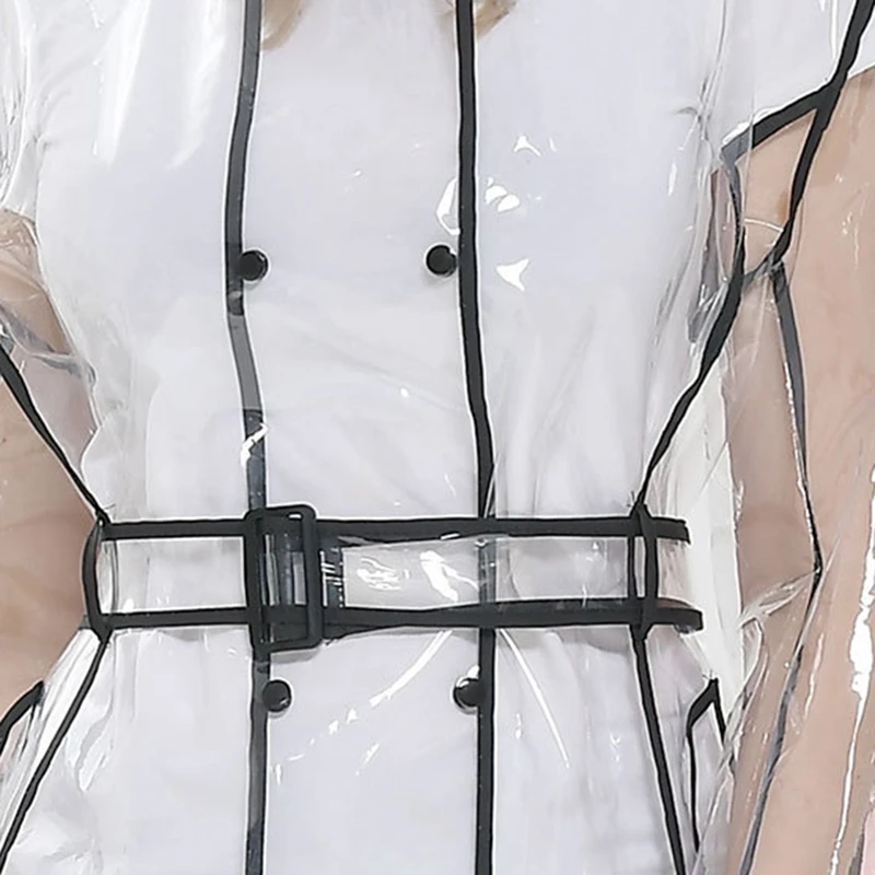 Отзывы о Женский прозрачный дождевик с поясом водонепроницаемая куртка прозрачное