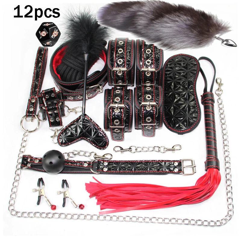 * 10 шт./партия: 1 шт. маска 1 шт. кляп для рта 1 шт. Ошейник 1 шт. хлыст 1 шт. крестообразная Пряжка 1 пара наручников 1 пара наручников для лодыжки наручники 10 м веревка для связывания 1 шт. перьевая палочка & Paddle Beat 1 пара зажимов для сосков * 7 шт./компл.: 1 маска 1 кляп для рта 1 Ошейник 1 кнут 1 пряжка для крестов 1 пара наручников 1 пара ограничителей для лодыжки