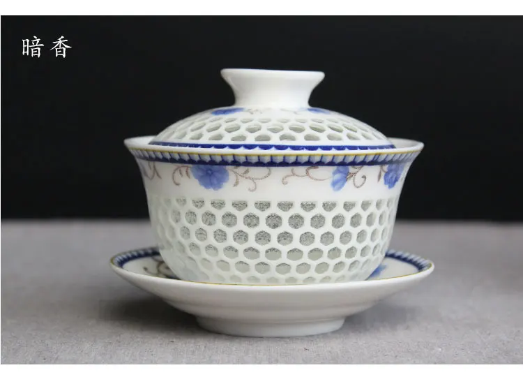 Отзывы о 150 мл Изысканная миска с полым покрытием сине-белая фарфоровая чайная чашка Белая