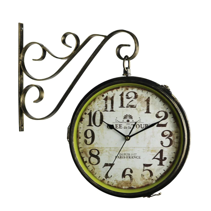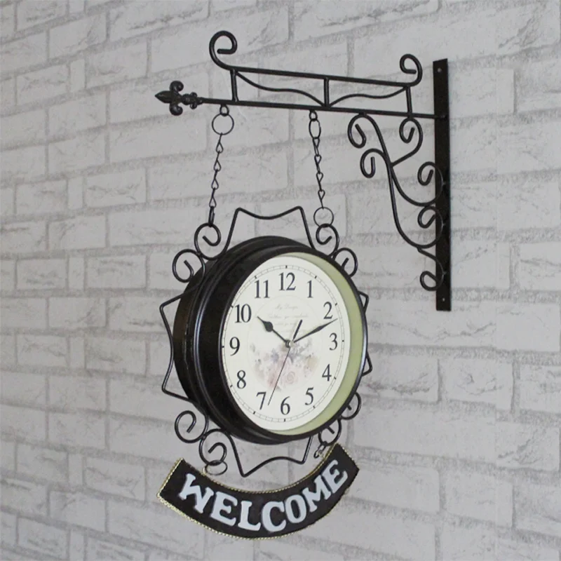 Черные роскошные металлические настенные часы, современный дизайн, винтажные, бесшумные, для гостиной, с двойным циферблатом, часы с железным колокольчиком, американские настенные часы HorlogeВес: 1,5 кг