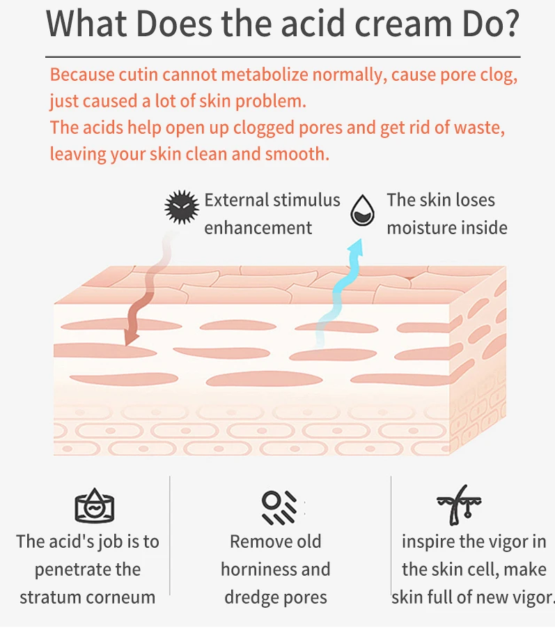 Этот крем с гидрокси-кислотой оказывает питательный эффект основного крема для лица. Ингредиенты гидрокси-кислоты могут решить проблемы с кожей, такие как акне, акне, черная голова, белая голова и грубые поры. Арбутин может отбелить кожу и решить темно-желтую кожу.