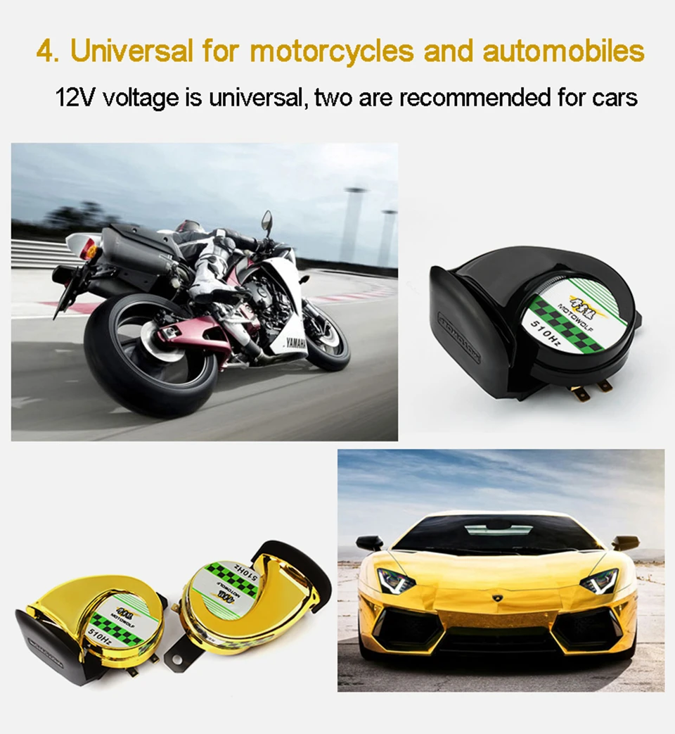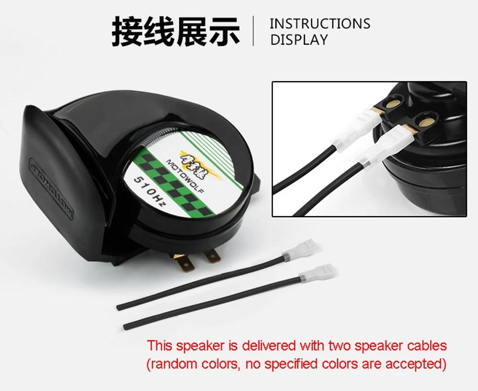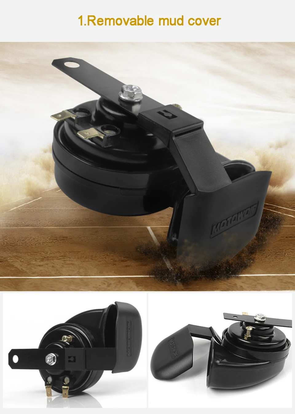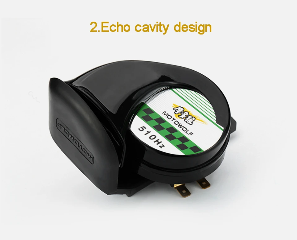 Бренд: MOTOWOLF Единица измерения: 1 цена Цвет: черный, серебристый, золотой, красный, синий Напряжение: 12 В Номинальная мощность: 30 Вт Номинальная частота: 510 Гц Громкость звука: 110 дБ Вес: 240 г Материал: инженерный пластик (АБС)