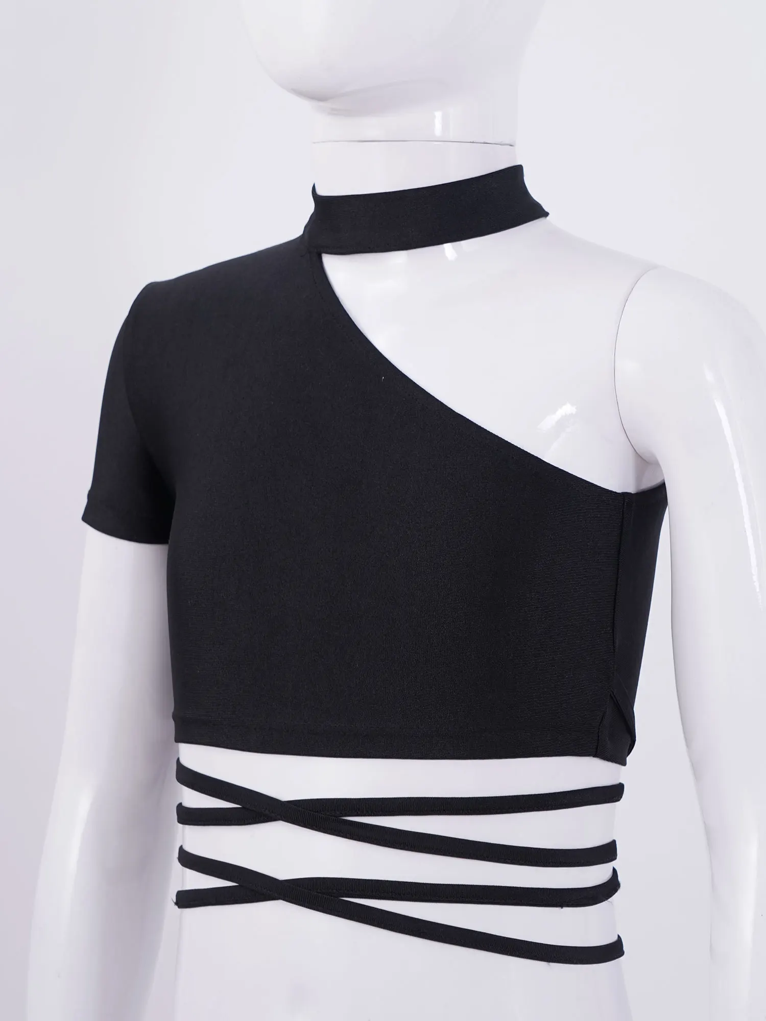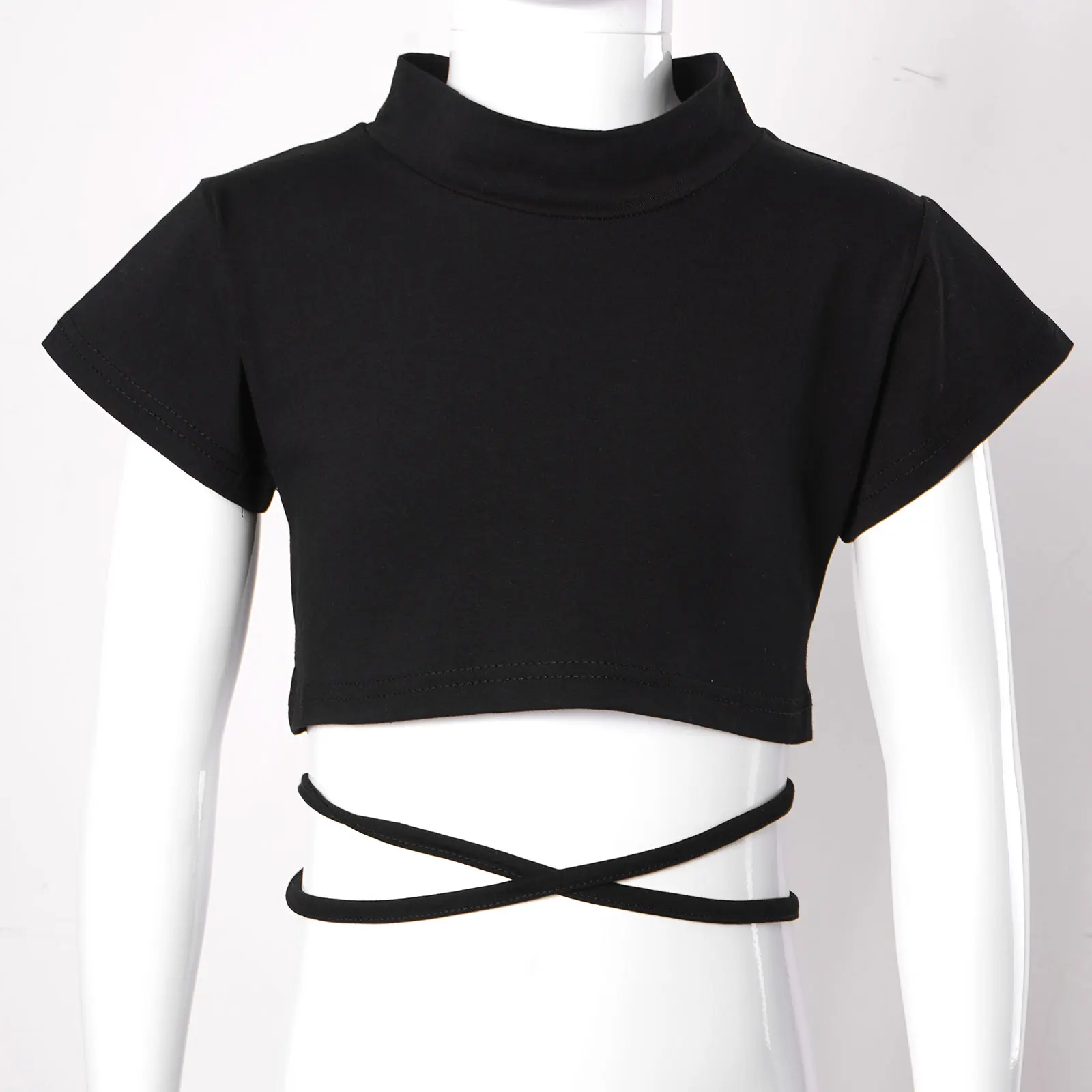 Дети унисекс с круглым воротом короткий рукав пояс галстук Крест талии джаз танец спортивный короткий топ.