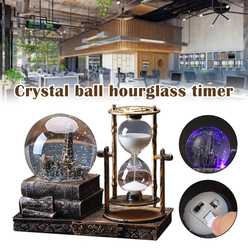 Ретро хрустальный шар песочные часы таймер домашний декор поделки 2-в-1 песочные часы таймер с подсветкой музыкальное украшение для стола Кабинета комнатыСпецификация товара:Особенности: