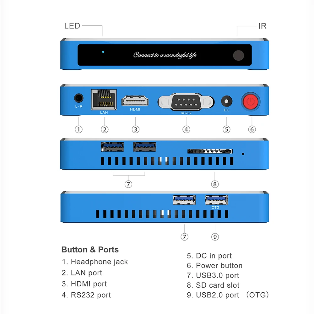 -Оперативная память: DDR4 4 Гб-ПЗУ: eMMC 64 ГБ-Android 9.0OS-Видеовыход UHD 4K и аппаратное декодированиеWiFi6,Bluetooth5.0Wireless соединение-1000 м LAN Ethernet RJ45Обзор: