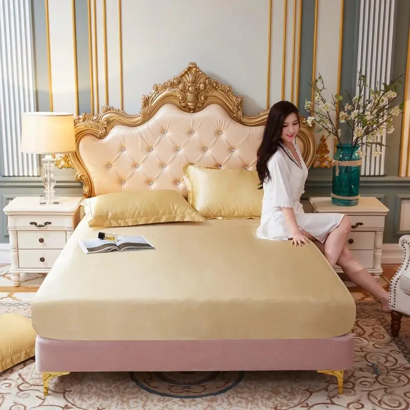 Отзывы о 25 шелковый атлас постельного белья эластичная натяжная простыня дома Постельное