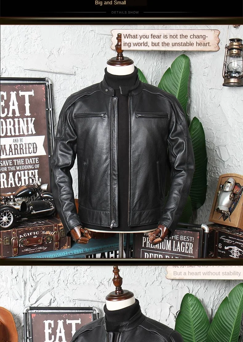 Отзывы о Мужская мотоциклетная куртка из натуральной кожи со съемным воротником-стойкой |
