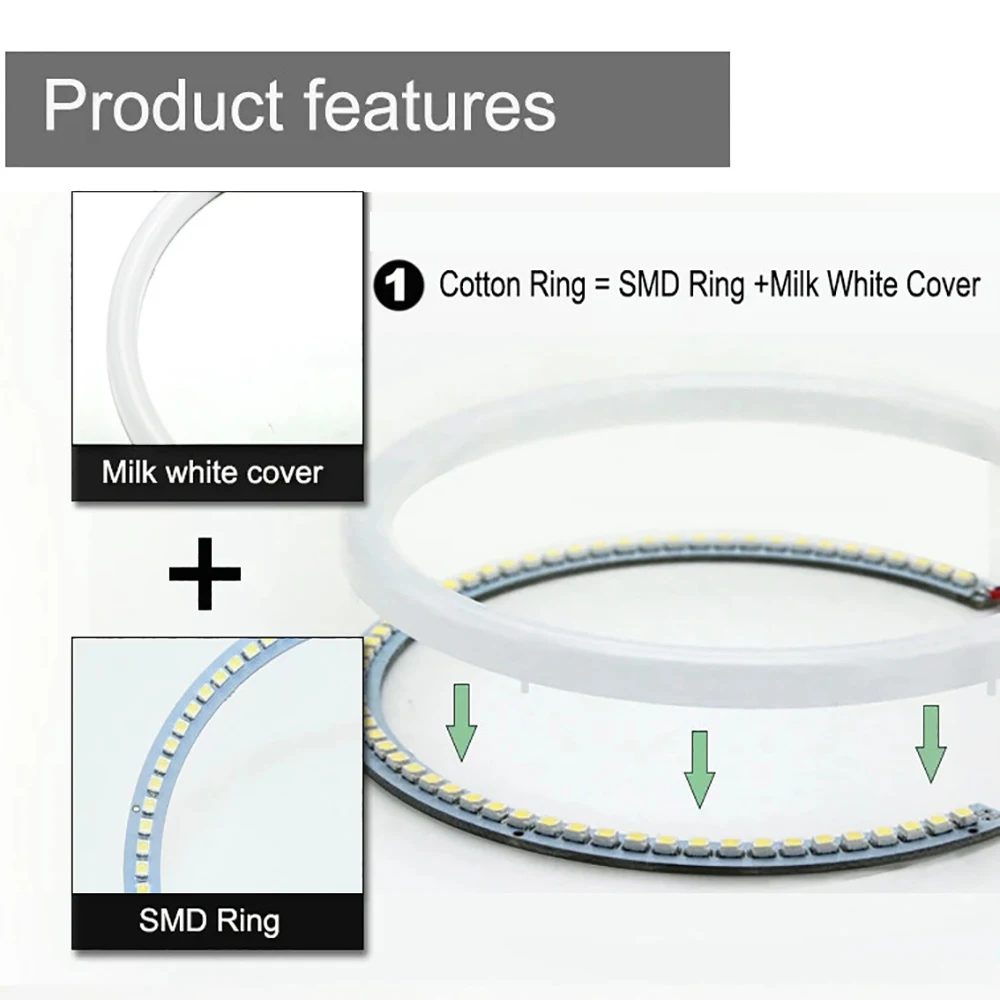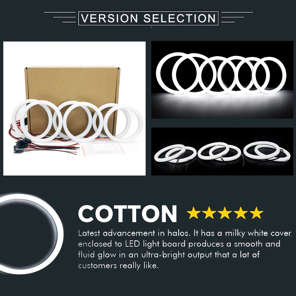 1. Специальный светильник из хлопка с SMD светодиодный ангельские глазки, который примерно в 2-3 раза ярче, чем обычные Кольца CCFL ангельские глазки, без слепых точек по сравнению с Кольца CCFL.